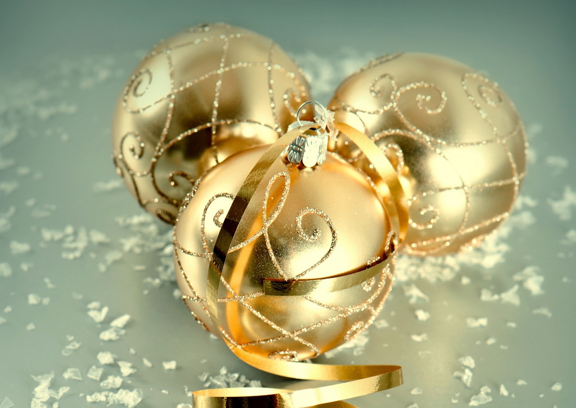 Boules de noël et ruban d'or