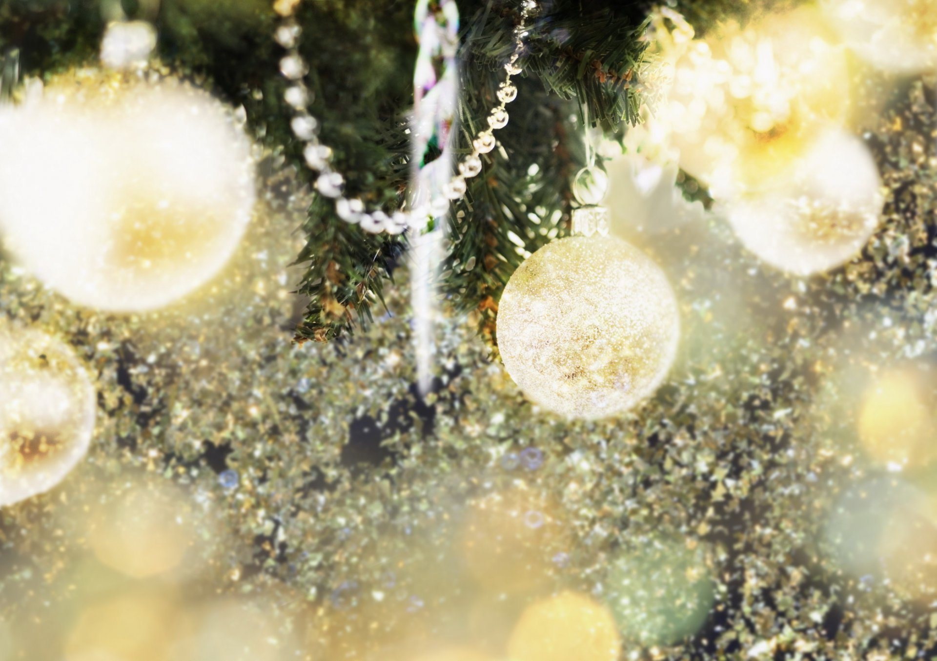 Sapin décoré avec des boules de noël et des guirlandesSapin décoré avec des boules de Noël et des guirlandes