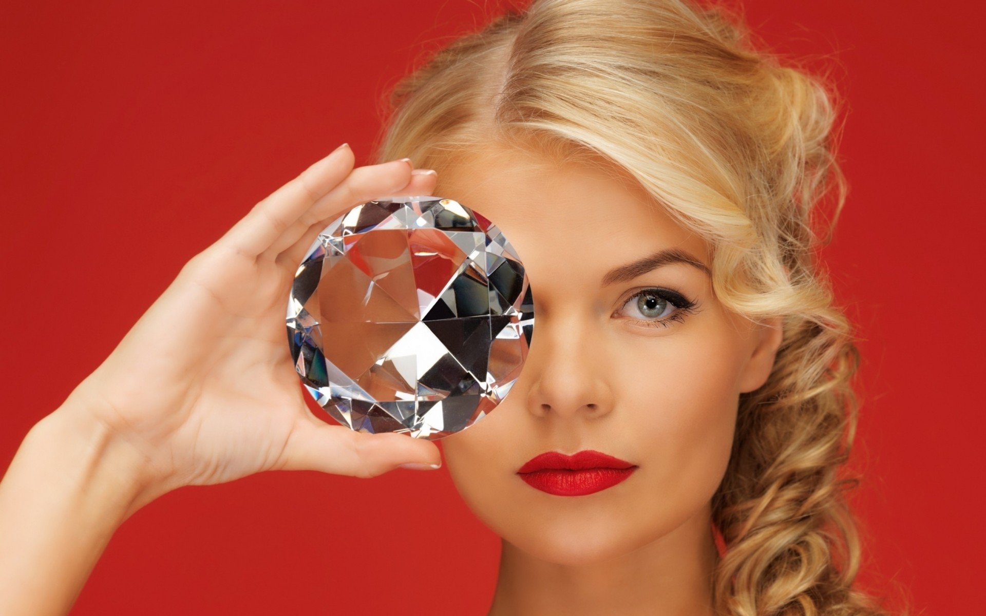 Fille avec rouge à lèvres rouge et gros diamant