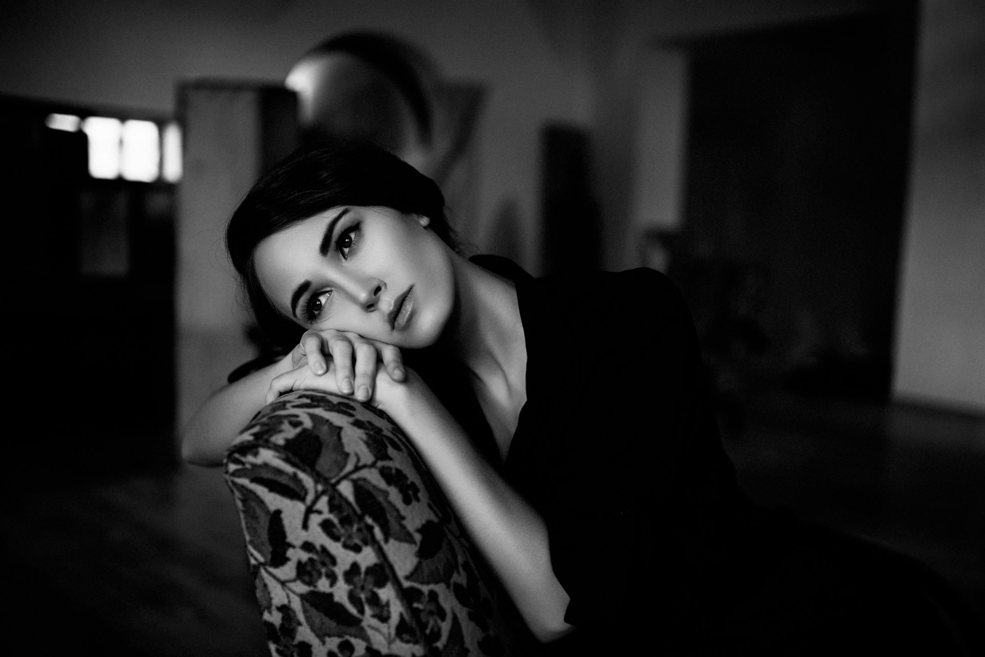 Portrait d'une belle fille avec de longues jambes qui est assis dans une chaisePortrait d'une belle fille avec de longues jambes qui est assis dans une chaise
