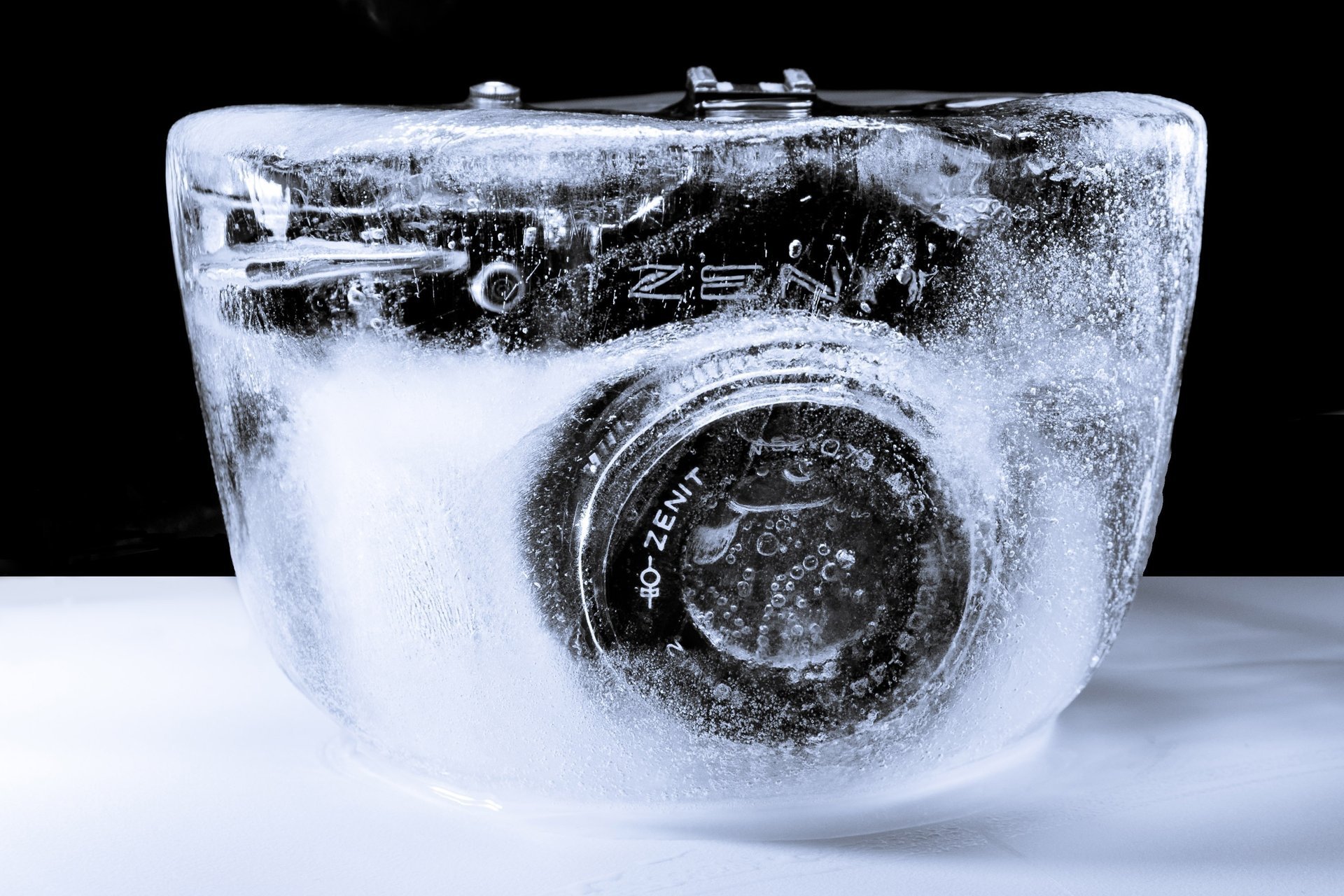 Appareil photo Zenith dans la glace sur fond noir