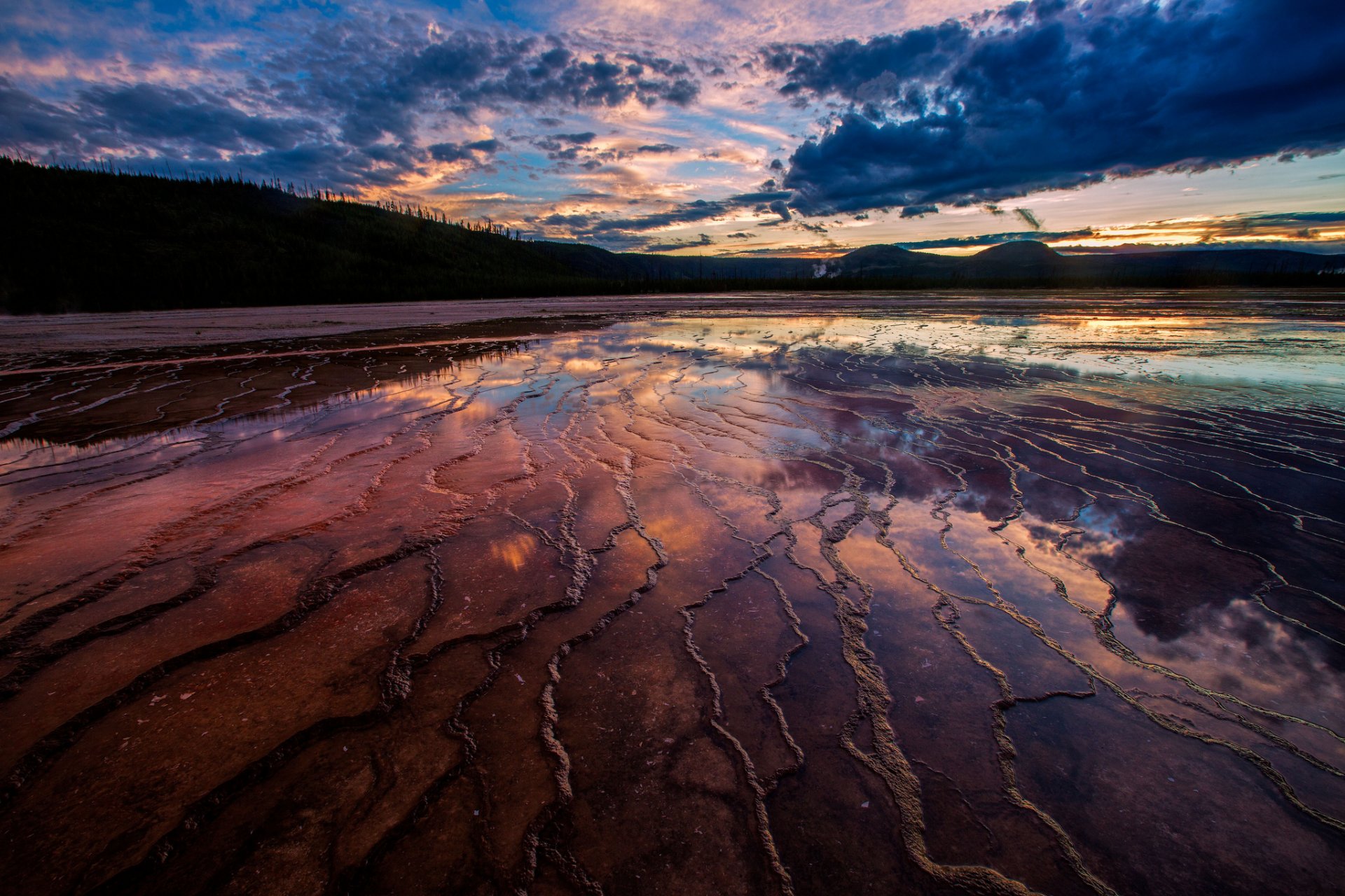 Reflet du coucher de soleil dans l'eau à marée basseReflet du coucher de soleil dans l'eau à marée basse