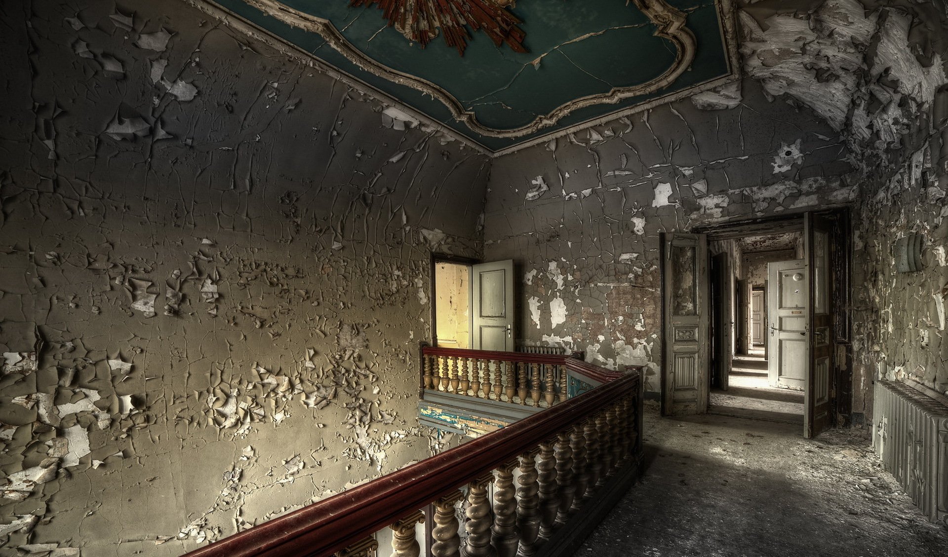 Vue de dessus d'un long escalier en colimaçon avec balustrade ajouréeVue de dessus d'un long escalier en colimaçon avec balustrade ajourée