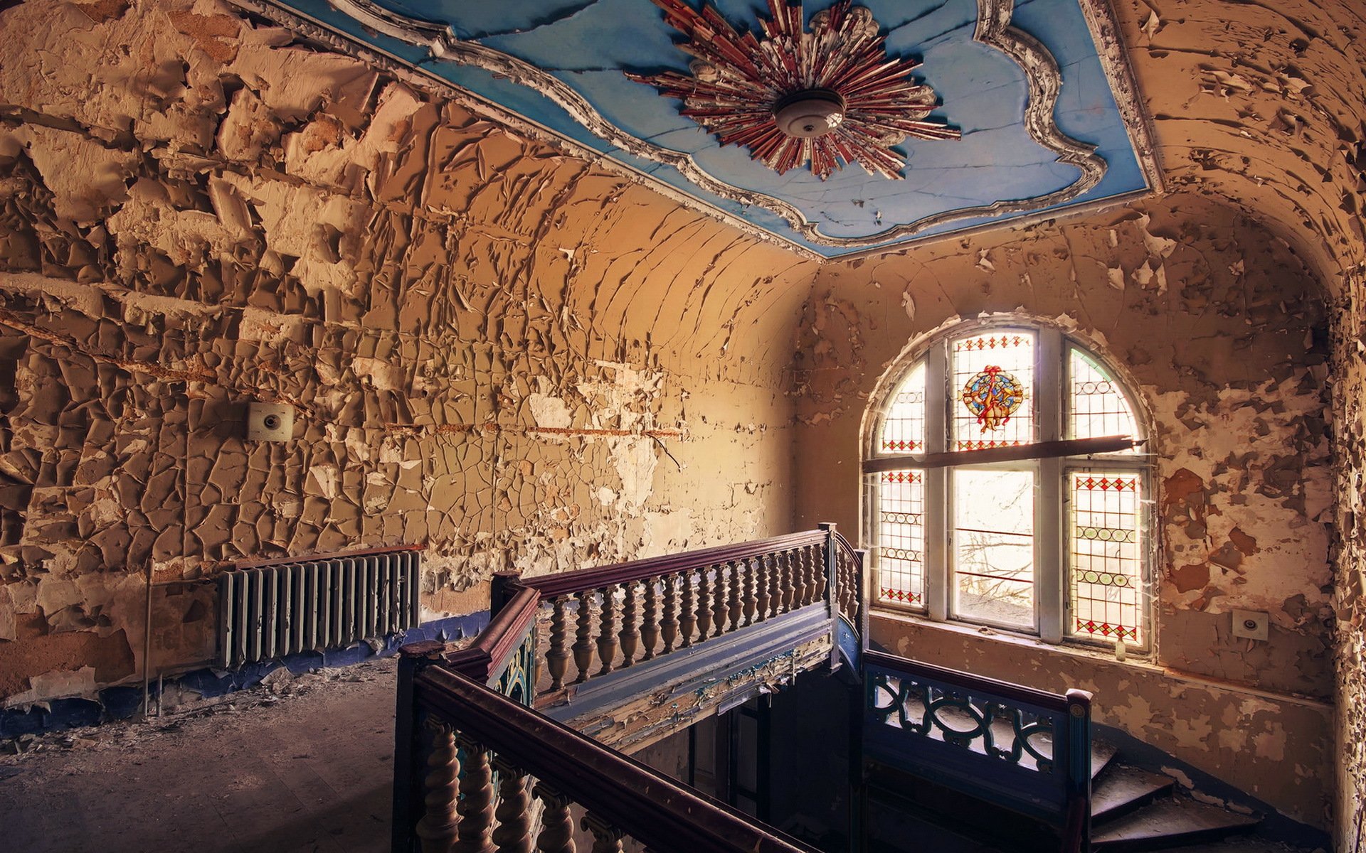 Escalier sur fond de peinture écaillée sur les mursEscalier sur fond de peinture écaillée sur les murs