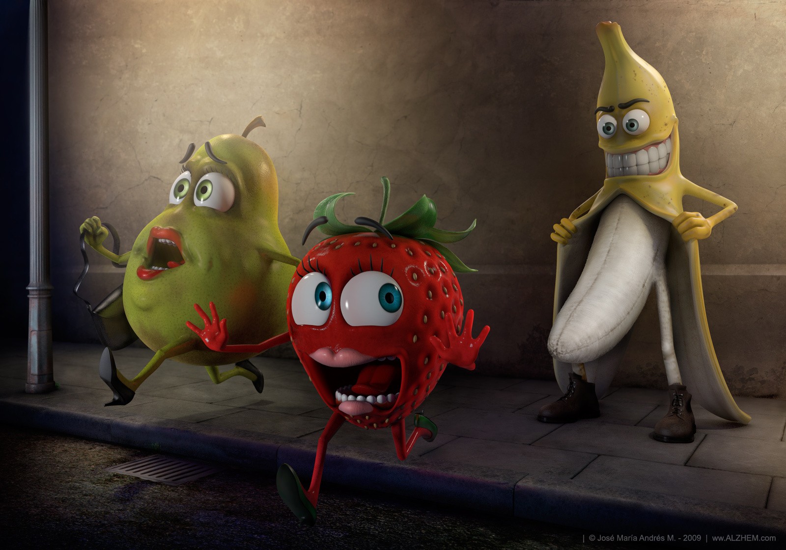 Banane-perverti fait peur à la poire et aux fraisesBanane-perverti fait peur à la poire et aux fraises