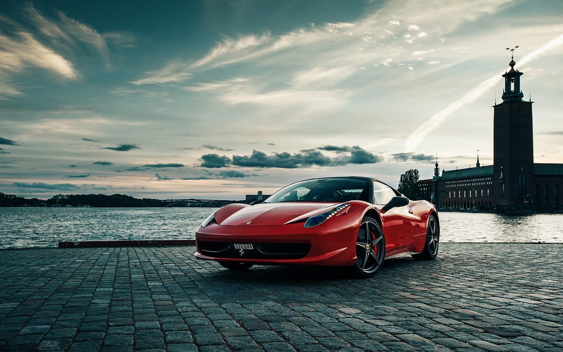 Voiture de sport rouge italienne ferrari f430 dans le garage