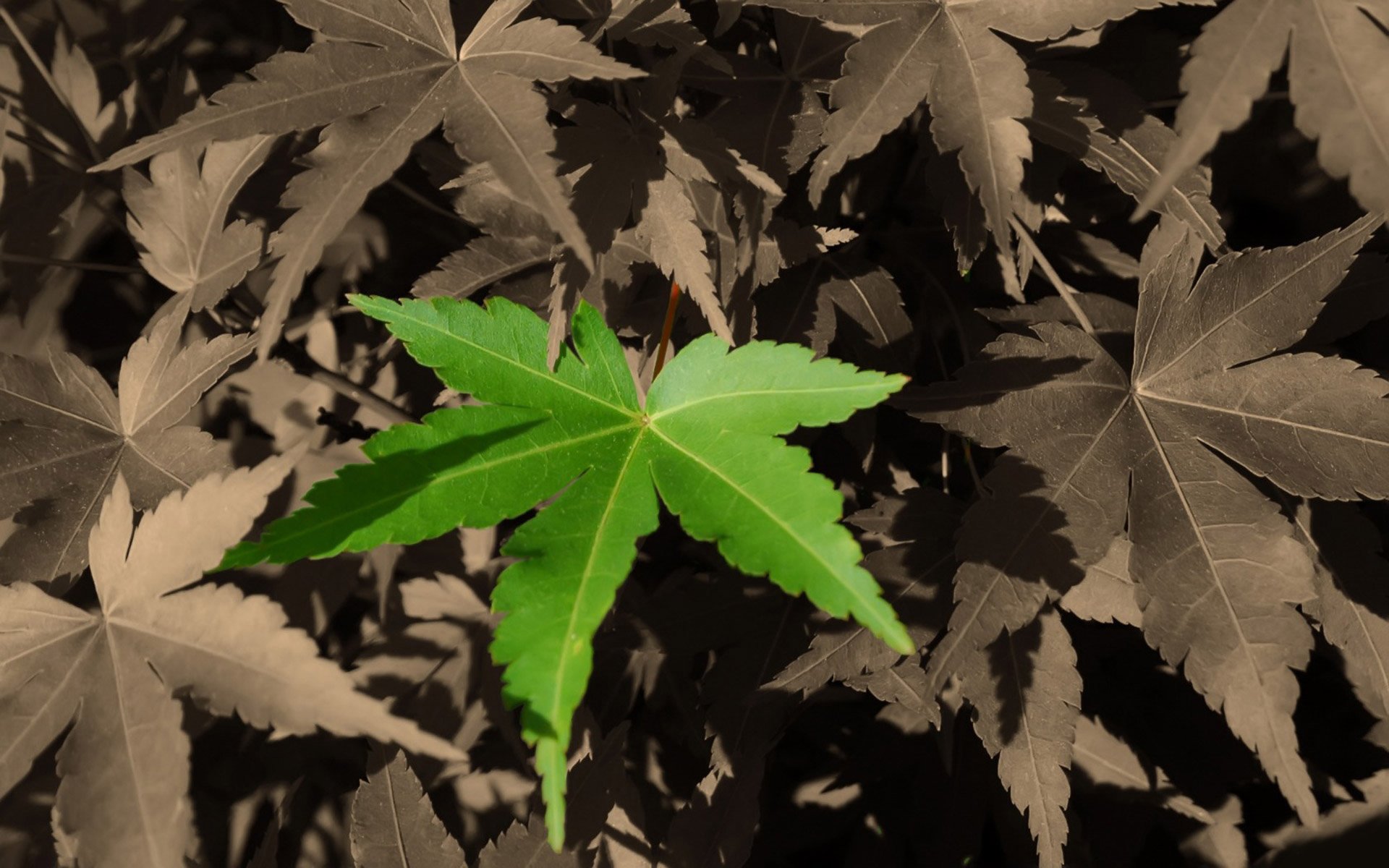 Feuille brillante dans le monde gris des rues de la villeFeuille brillante dans le monde gris des rues de la ville