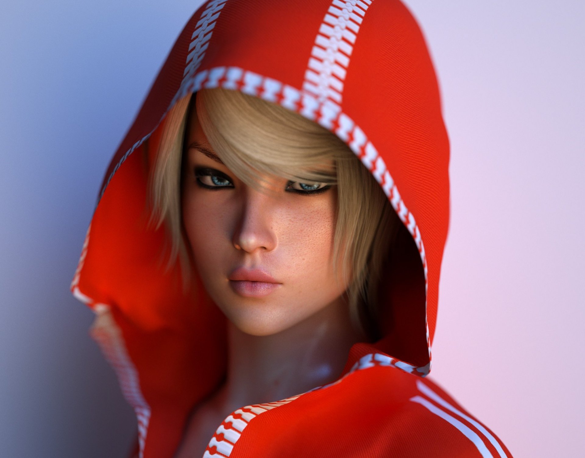 Belle fille en t-shirt rayé est assis sur le lit près de la fenêtreBelle fille en t-shirt rayé est assis sur le lit près de la fenêtre