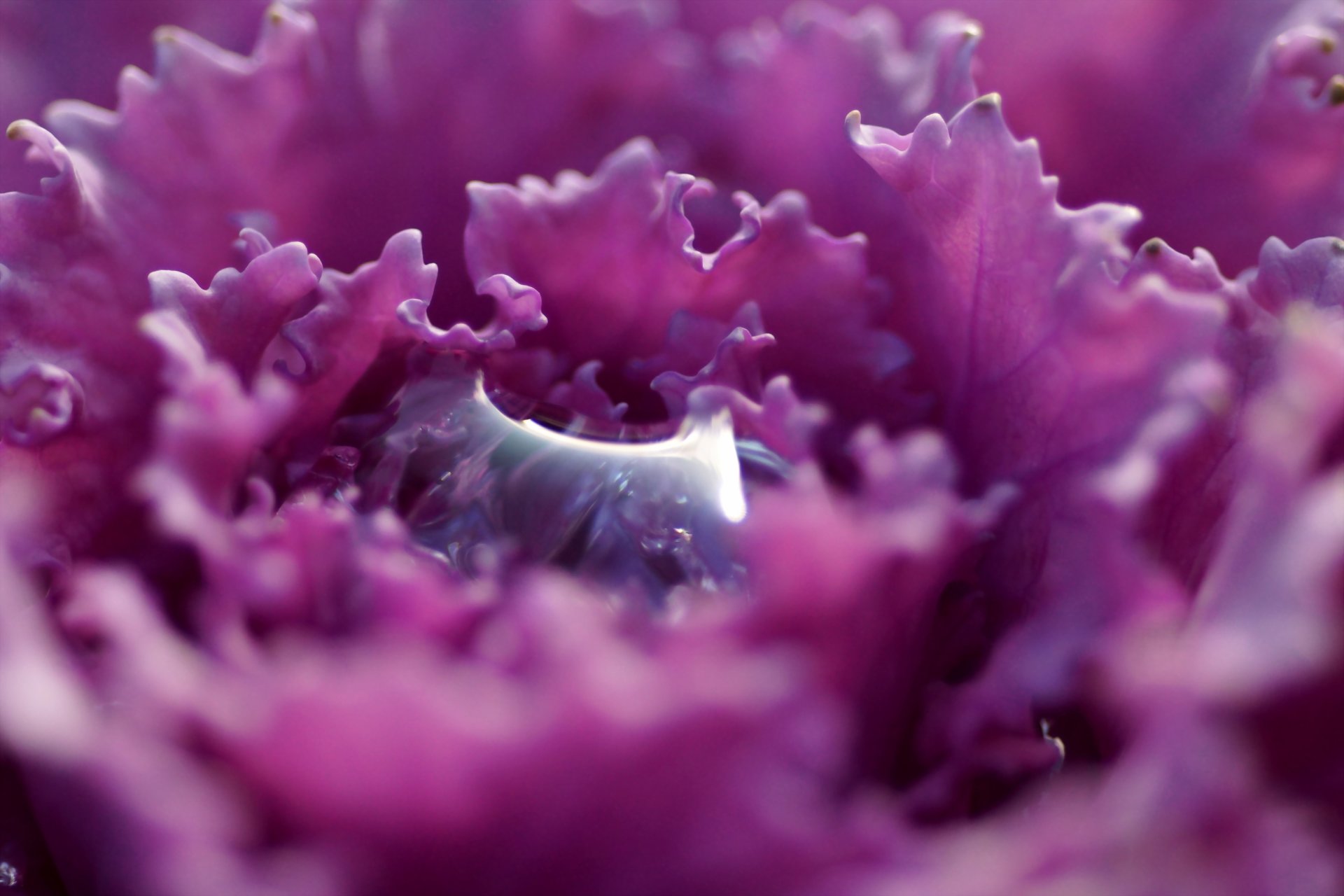 Goutte au milieu d'une fleur pourpre avec des pétalesGoutte au milieu d'une fleur pourpre avec des pétales