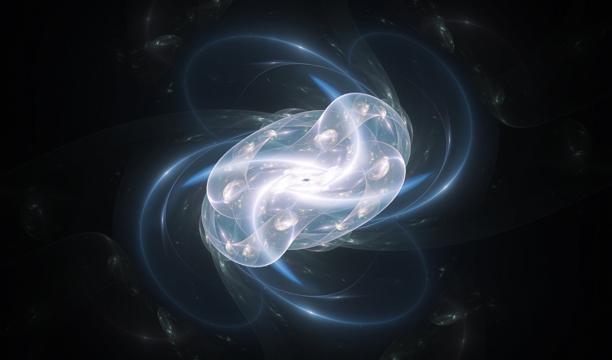 Sur un fond sombre, des bulles vertes et des boules avec des éclats verts et des courbesSur un fond sombre, des bulles vertes et des boules avec des éclats verts et des courbes
