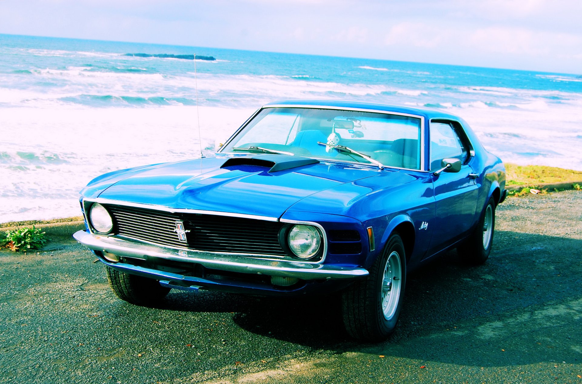 Rare Ford Mustang sur fond de maisons de Saint-Pétersbourg