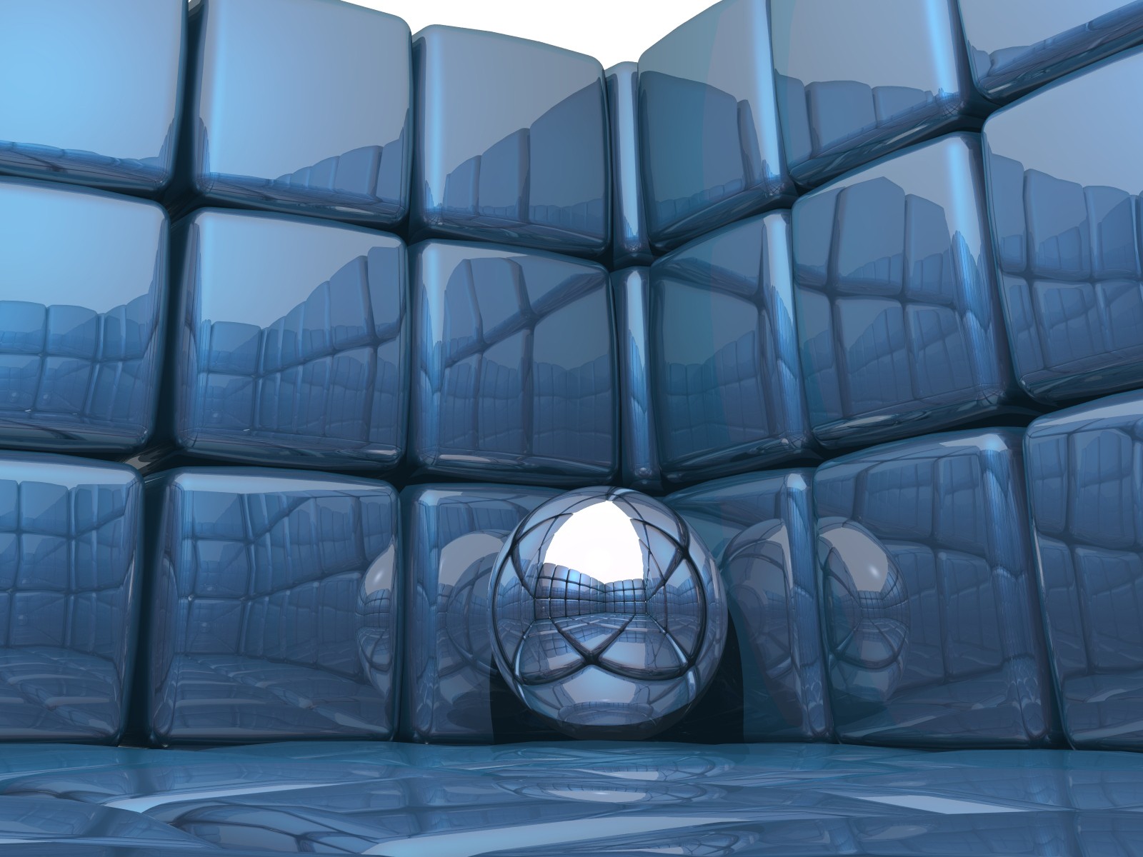 Boule de métal sur fond de cubes bleus