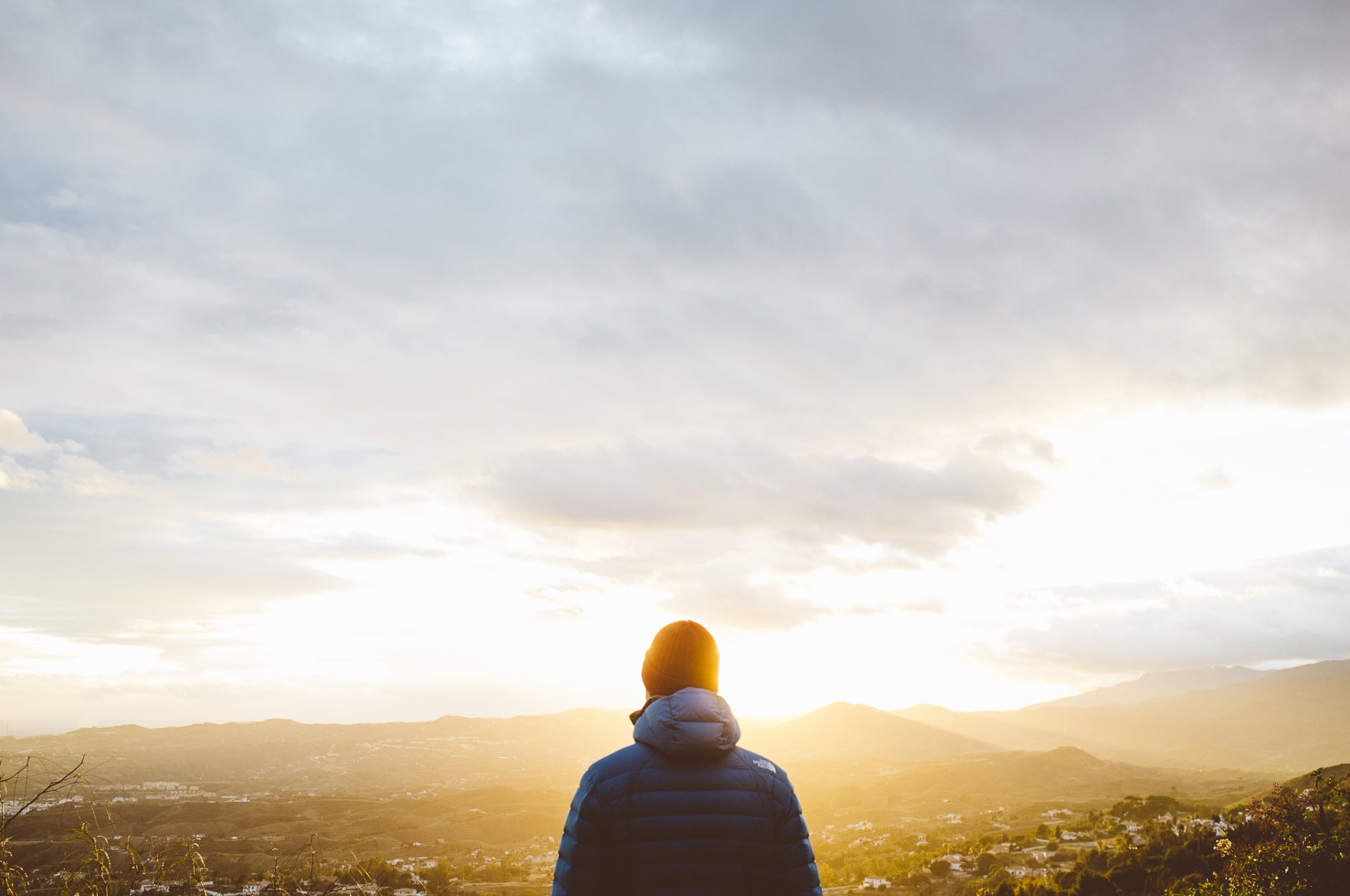 Le gars se trouve sur l'herbe et regarde dans l'objektivLe gars se trouve sur l'herbe et regarde dans l'OBJEKTIV