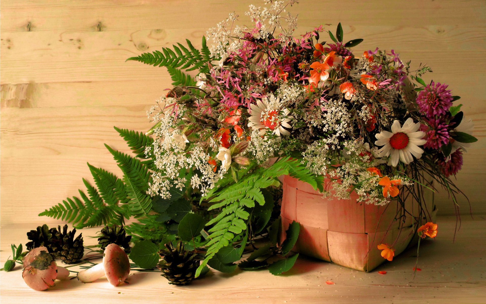 Pot de lait et de fromage cottage à côté d'un bouquet de fleurs sauvagesPot de lait et de fromage Cottage à côté d'un bouquet de fleurs sauvages