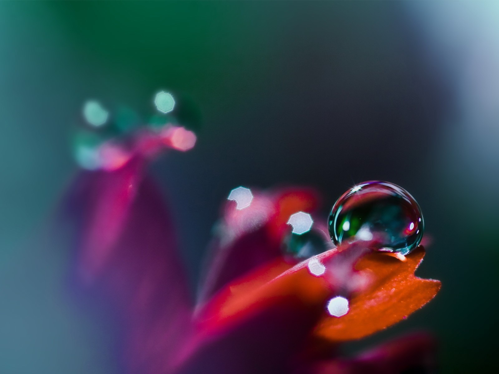Goutte d'eau sur le pétale rose vif de la beauté étonnante de la plante