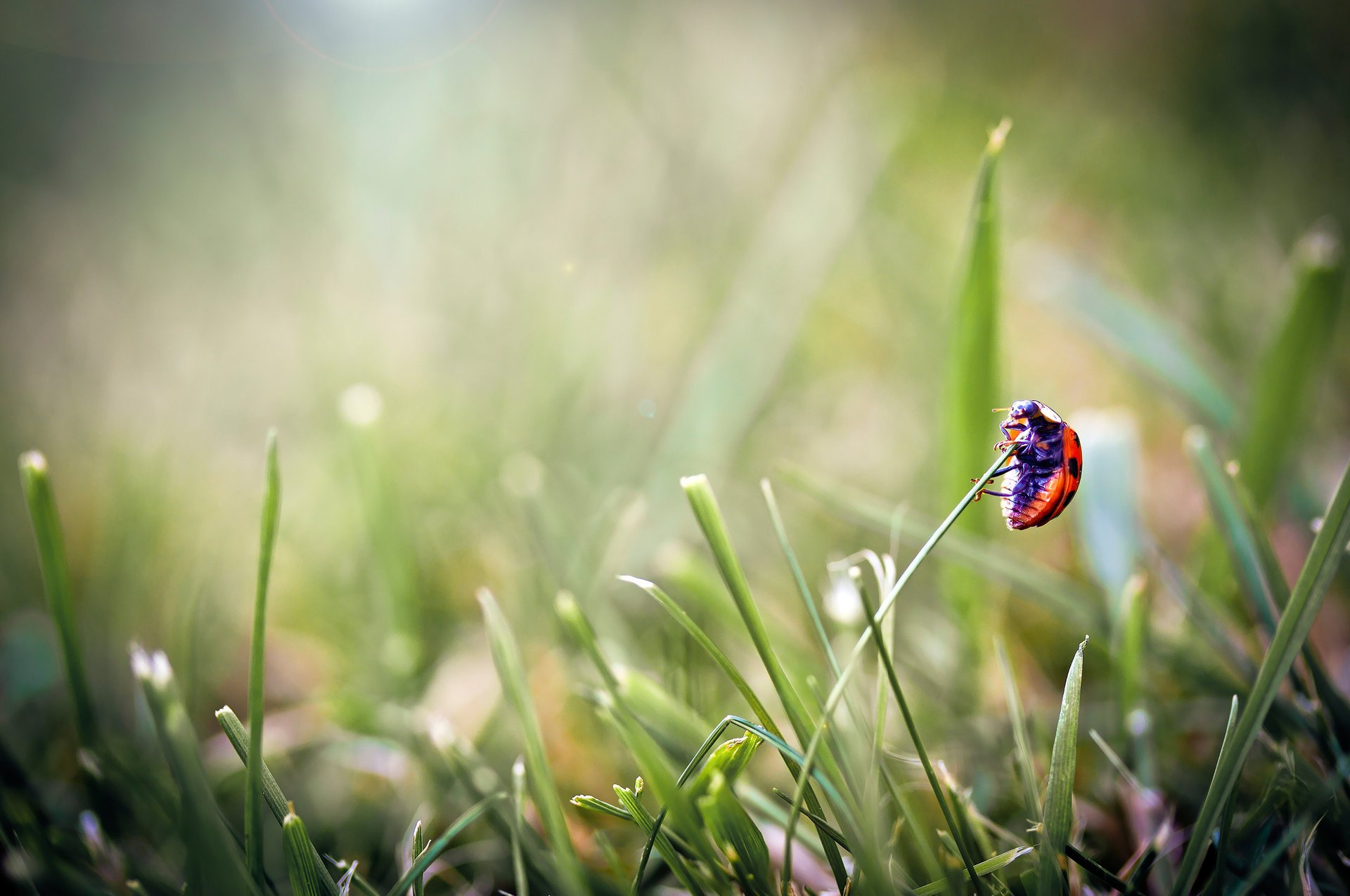 Photo de gros plan d'une coccinelle sur la pointe de l'herbePhoto de gros plan d'une coccinelle sur la pointe de l'herbe
