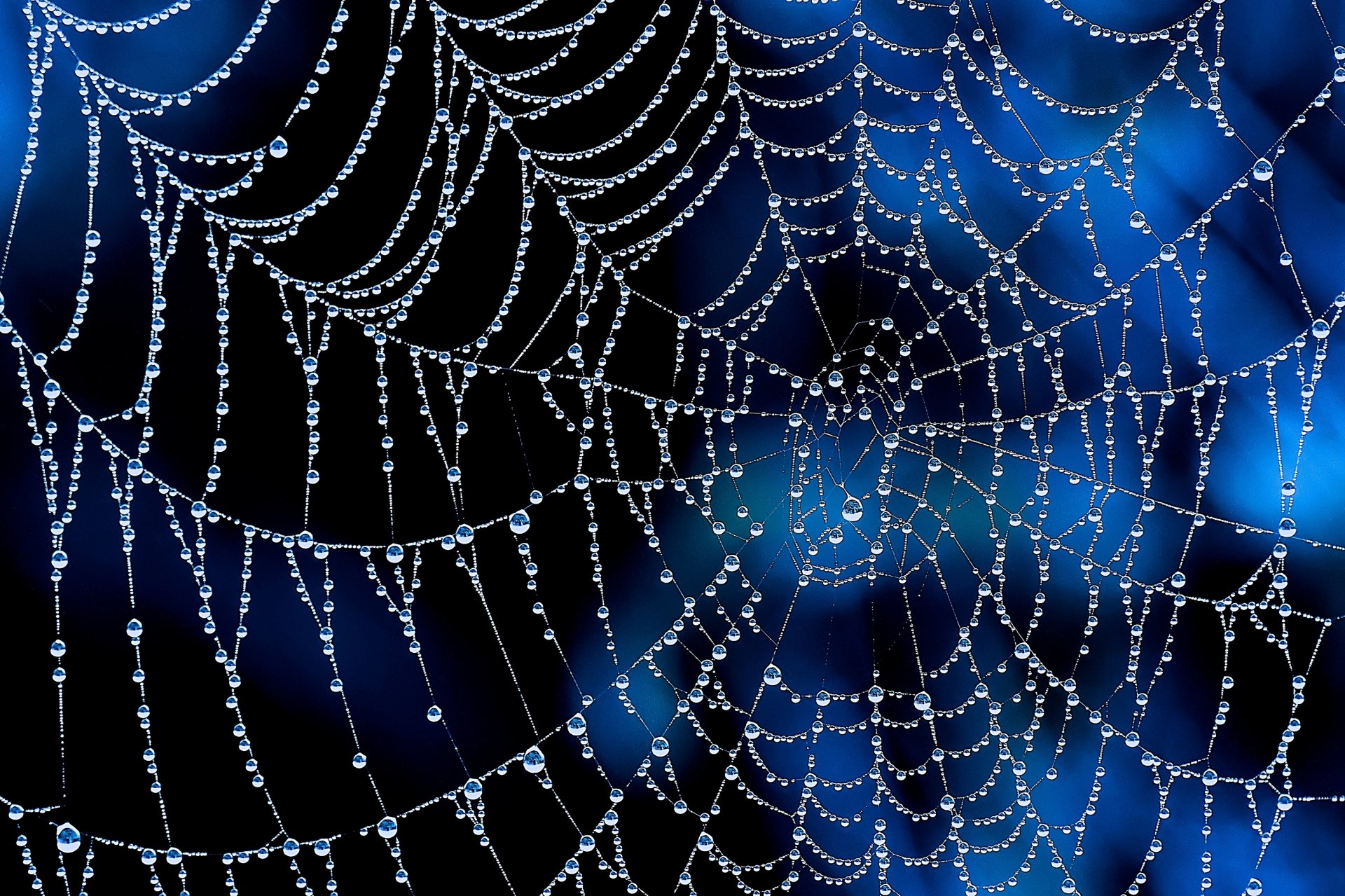 Gros plan de tir de toile d'araignée dans les gouttes de roséeGros plan de tir de toile d'araignée dans les gouttes de rosée