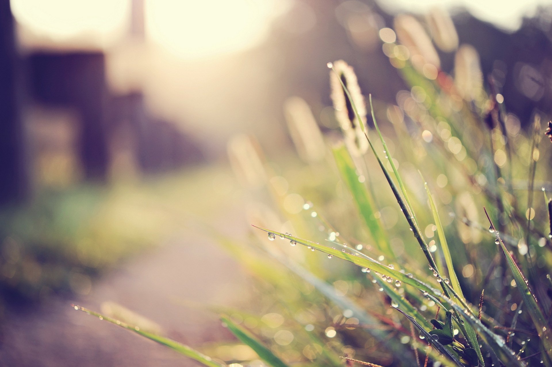 Rosée du matin sur l'herbe. Macrophotographie