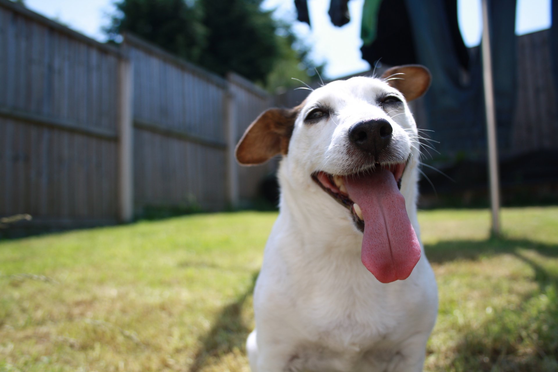 Chien dans le champ, marcher avec un animal de compagnie, chien satisfaitChien dans le champ, marcher avec un animal de compagnie, chien satisfait