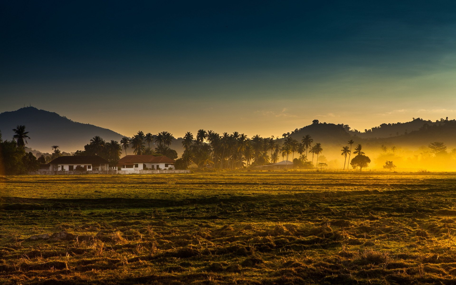 Le brouillard froid du matin se répand le long du lac et de la forêt dans les rayons de l'aubeLe brouillard froid du matin se répand le long du lac et de la forêt dans les rayons de l'aube