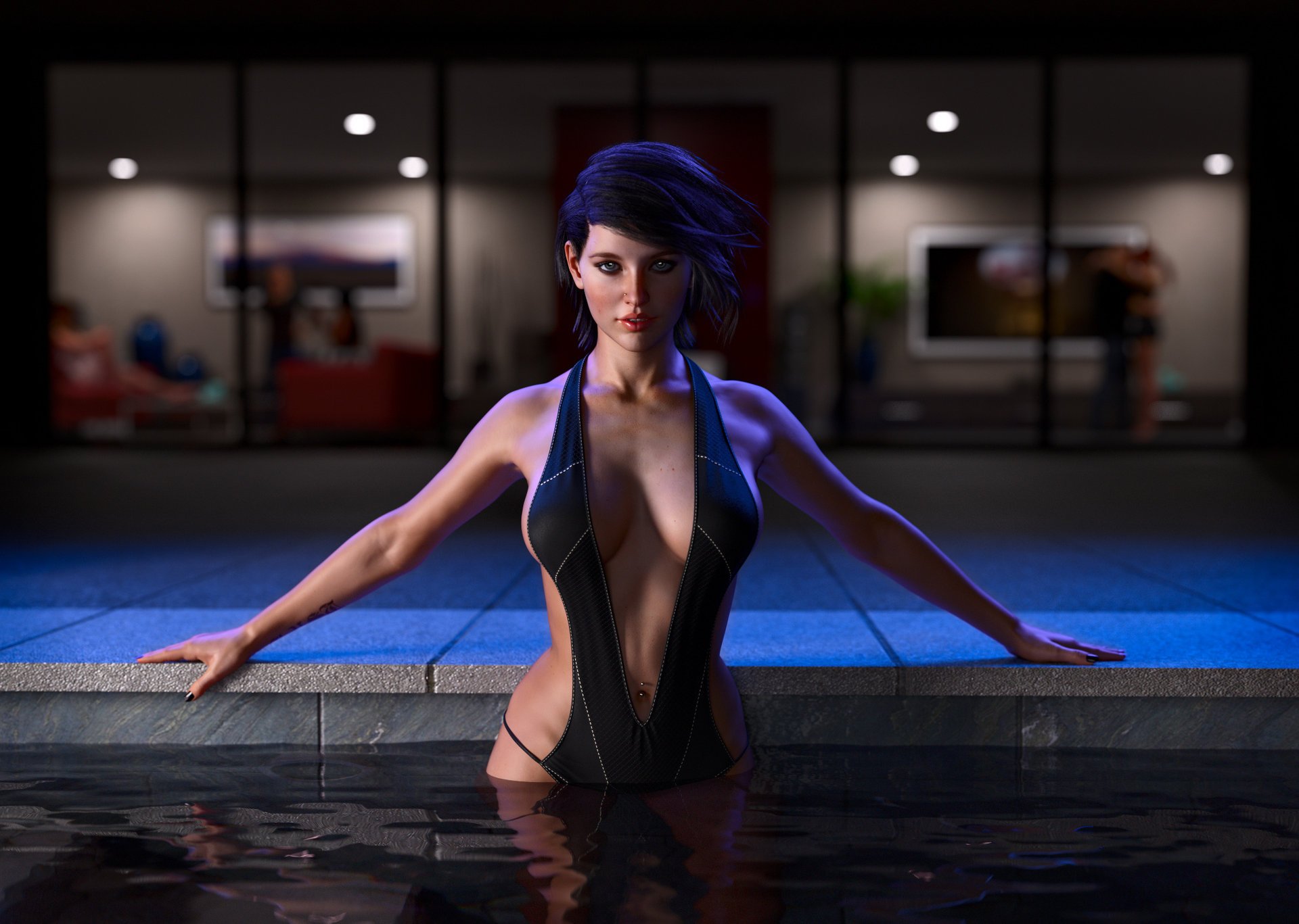 Audi sport vert dans la cour de la maison. Rendu 3D