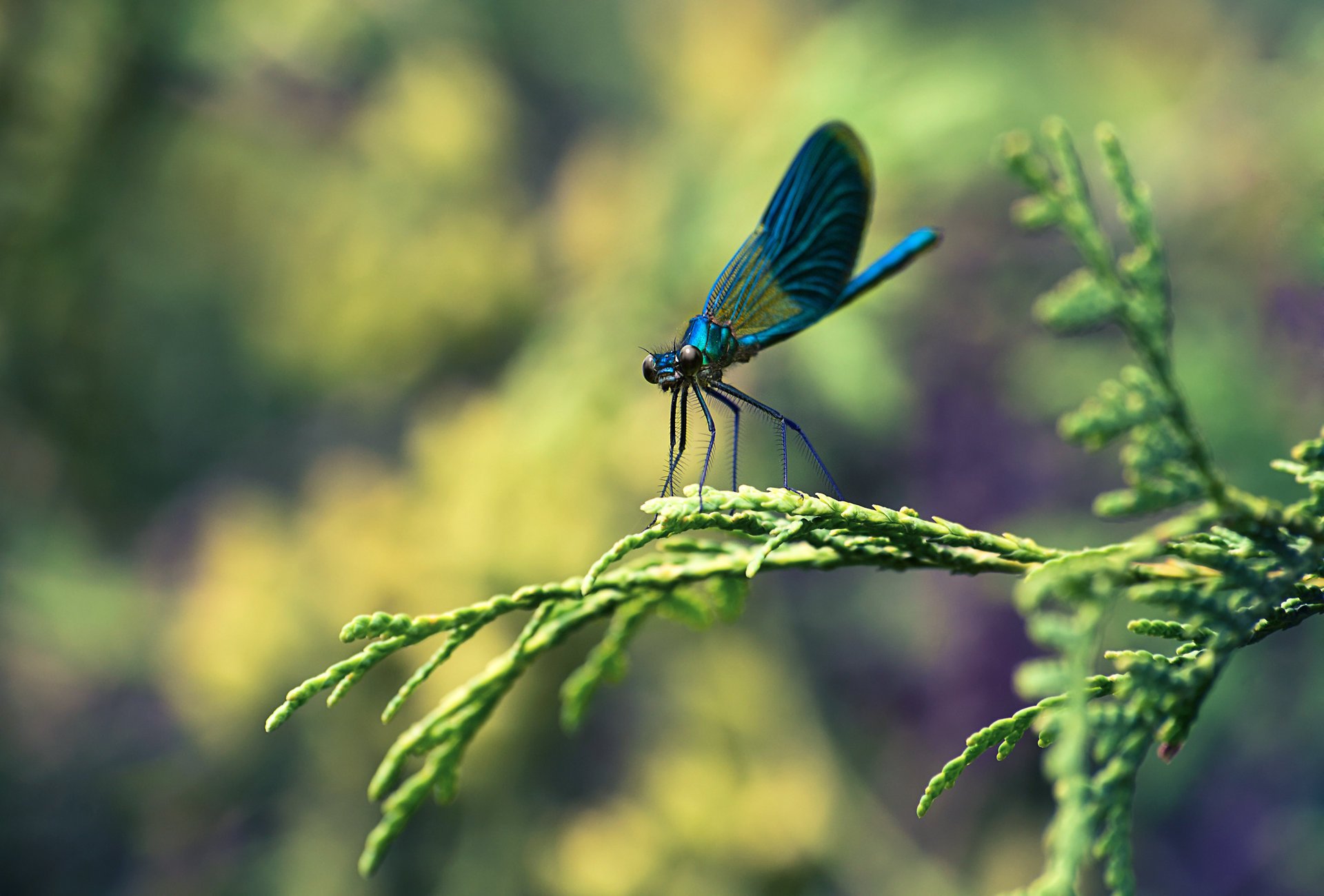 Dessin de fleurs bleues libellule volant au-dessus d'eux