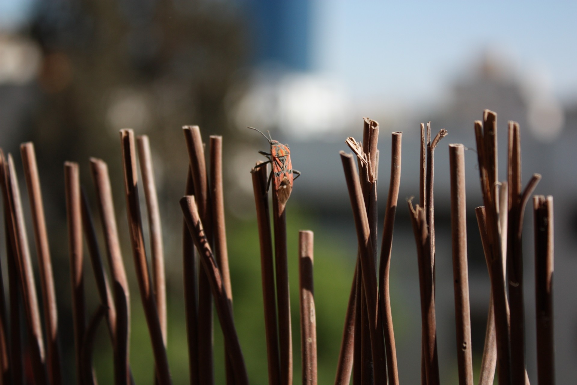 Insecte déguisé sur les brindilles avec un fond flouInsecte déguisé sur les brindilles avec un fond flou