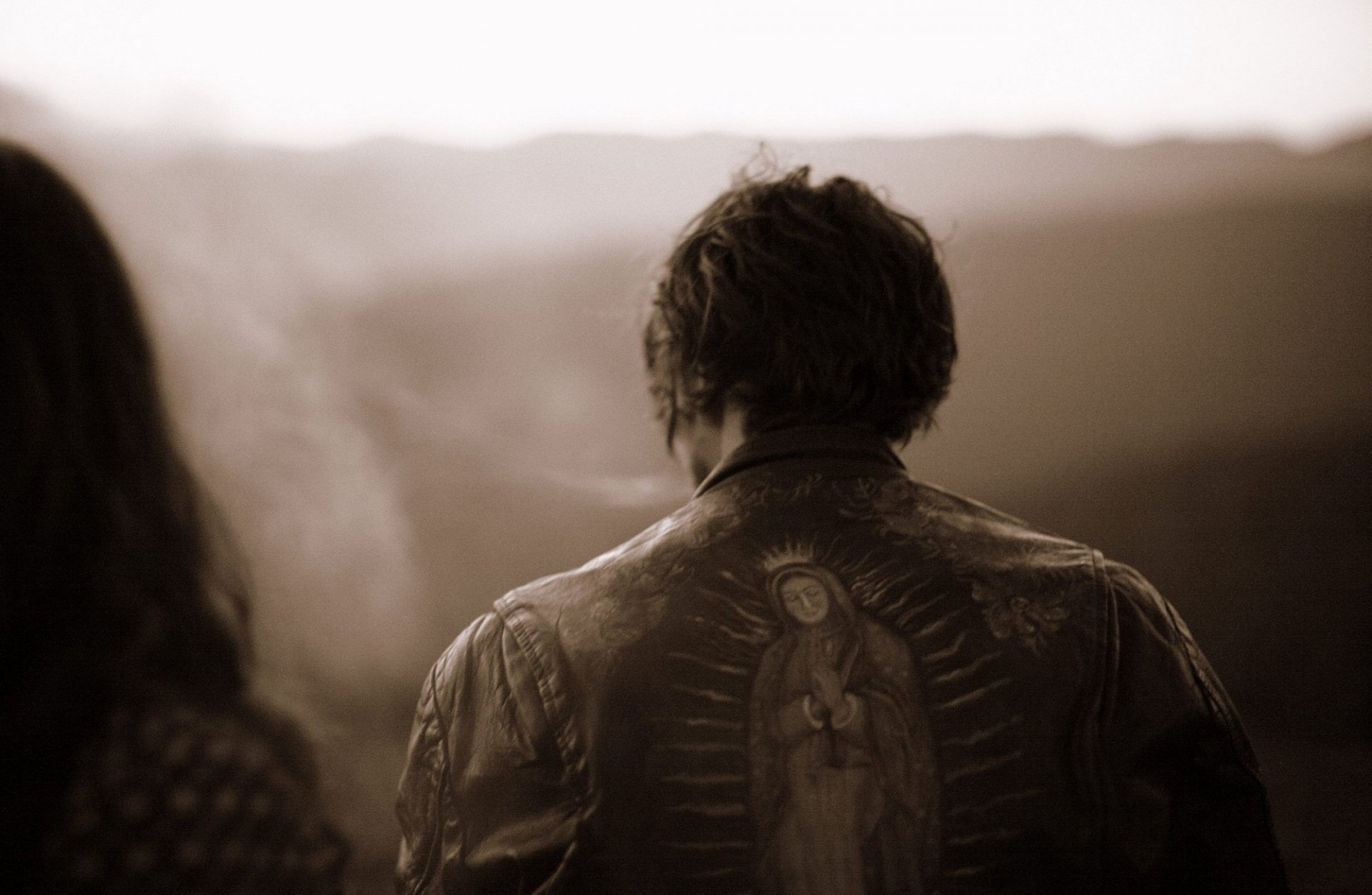 L'ombre de l'inconnu sur la porte derrière l'hommeL'ombre de l'inconnu sur la porte derrière l'homme