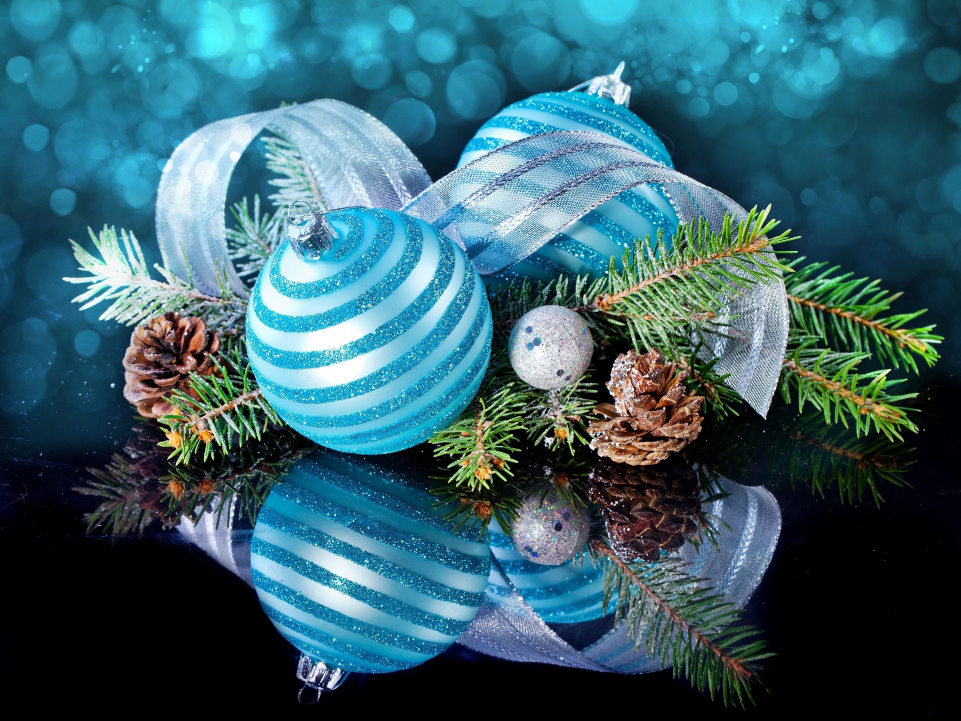 Branche d'arbre de Noël ornée d'un ruban et d'une boule de couleur bleue