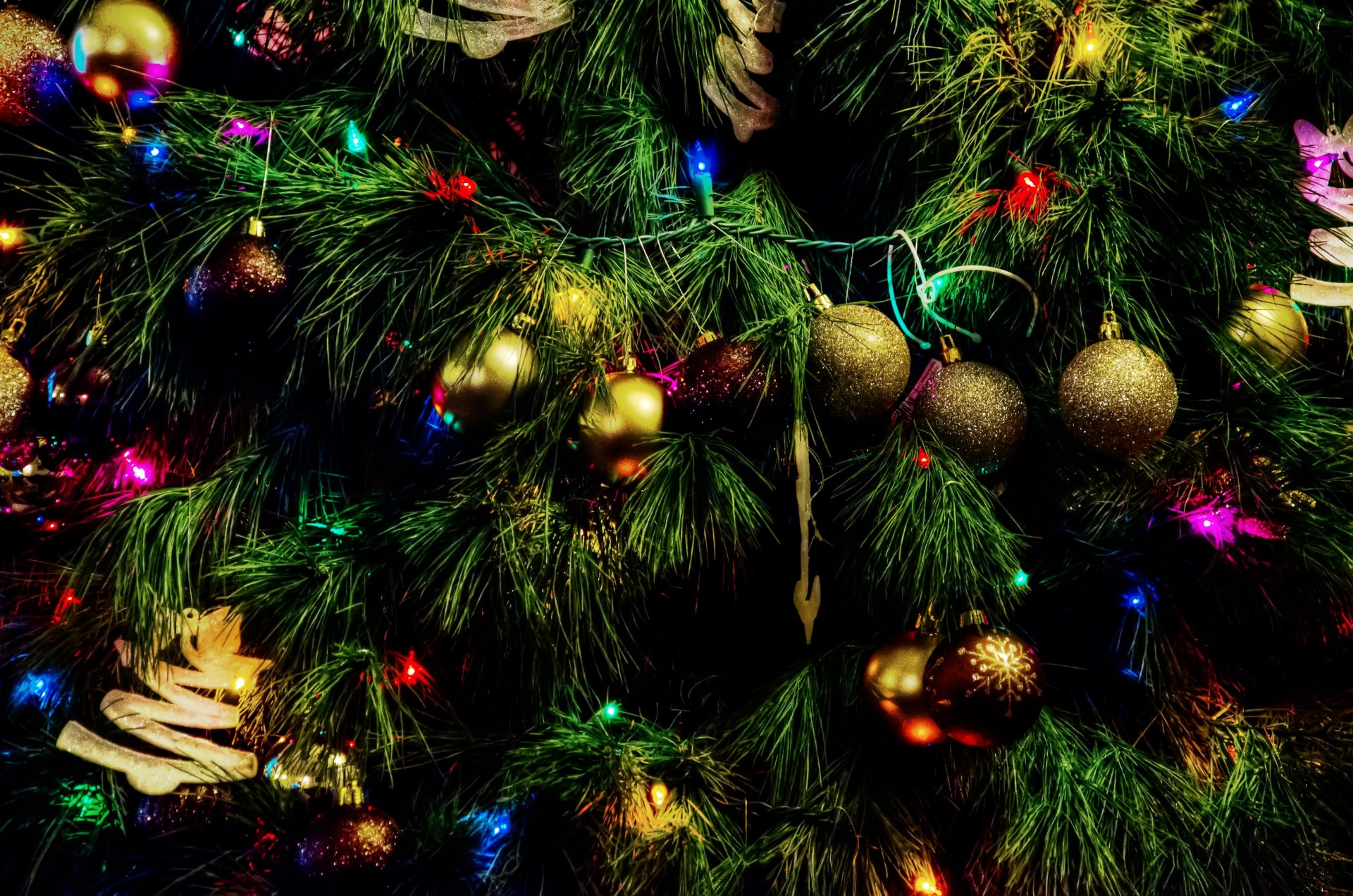 Arbre de Noël et le père Noël en traîneau avec des Rennes