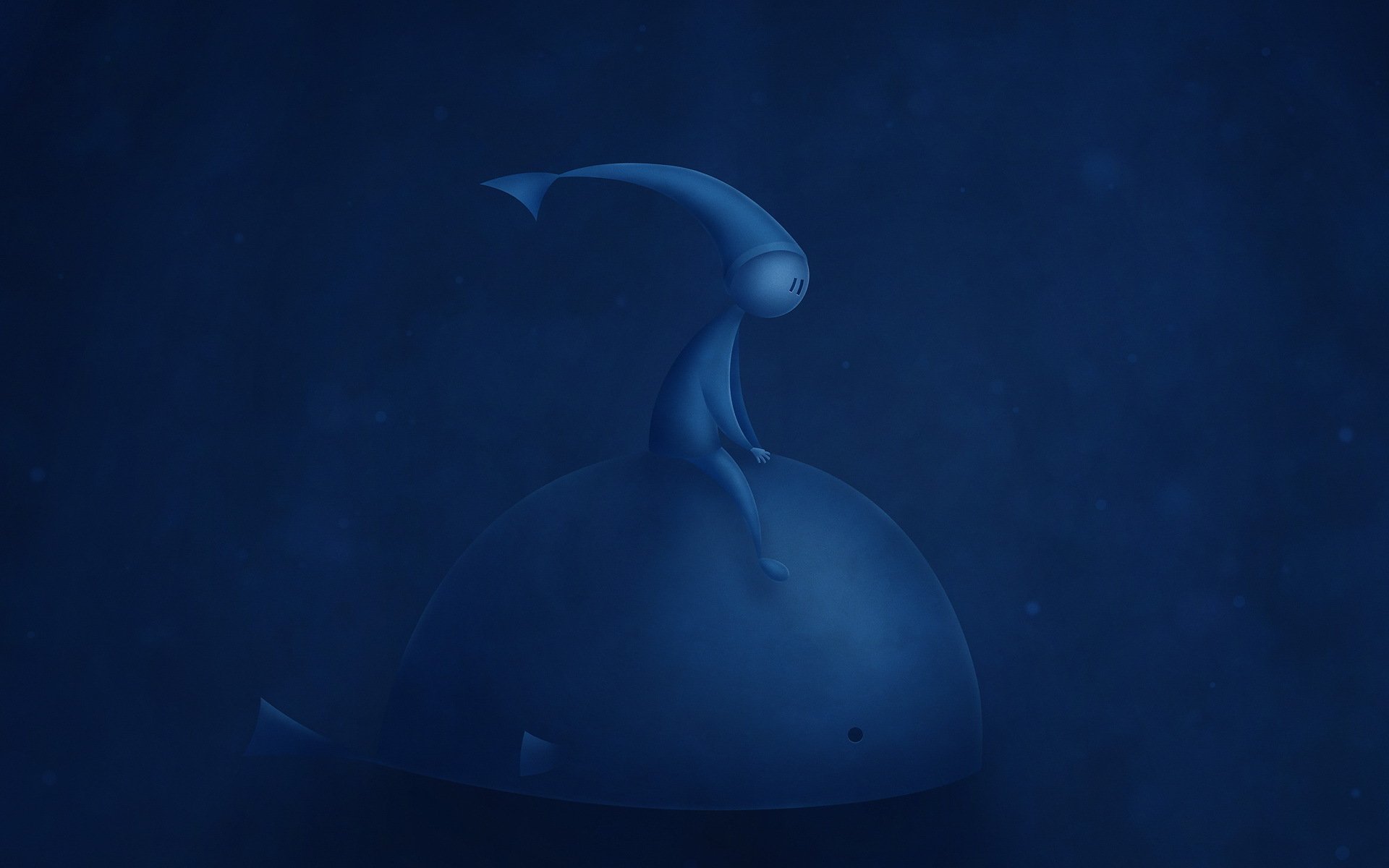 Baleine bleue avec petit homme sur fond bleu