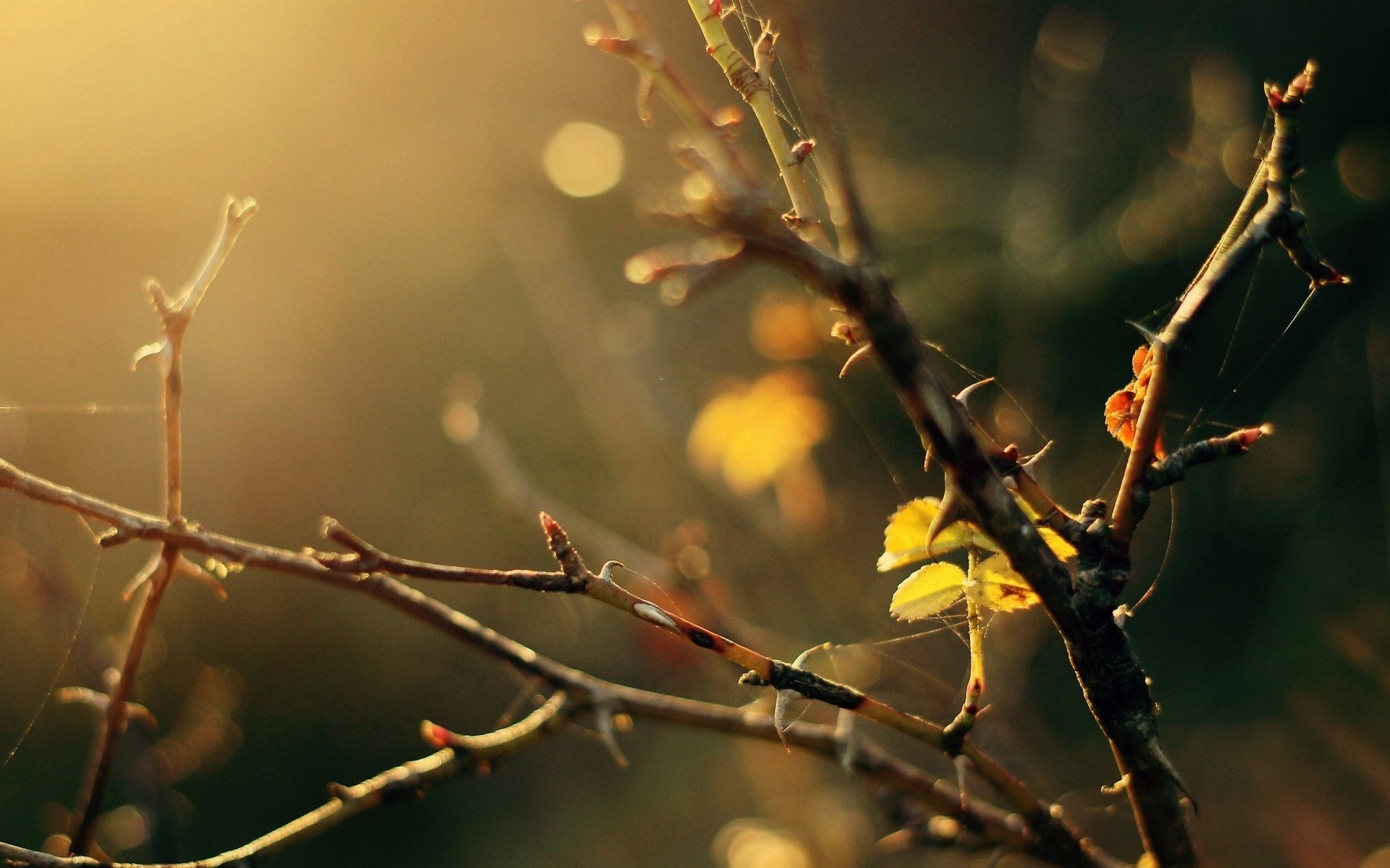 Les brins de toile d'araignée enveloppent les feuilles jauniesLes brins de toile d'araignée enveloppent les feuilles jaunies