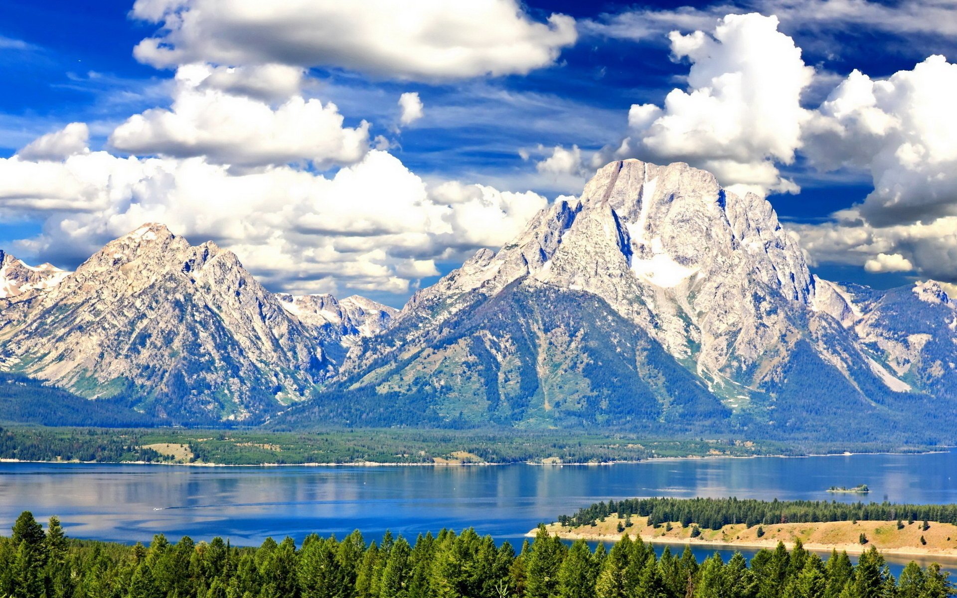 Les nuages flottent dans le ciel au-dessus du lac de montagne