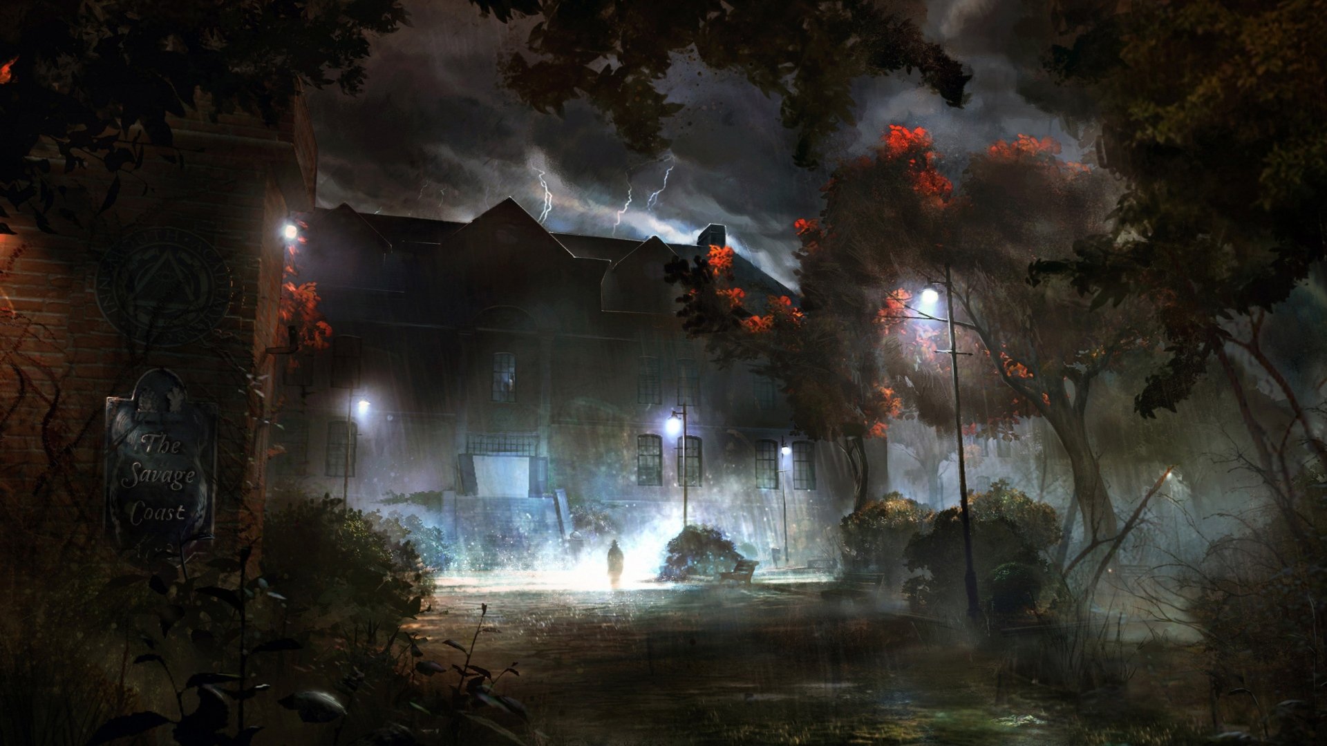 Silhouette d'une maison près de la route avec des lanternesSilhouette d'une maison près de la route avec des lanternes