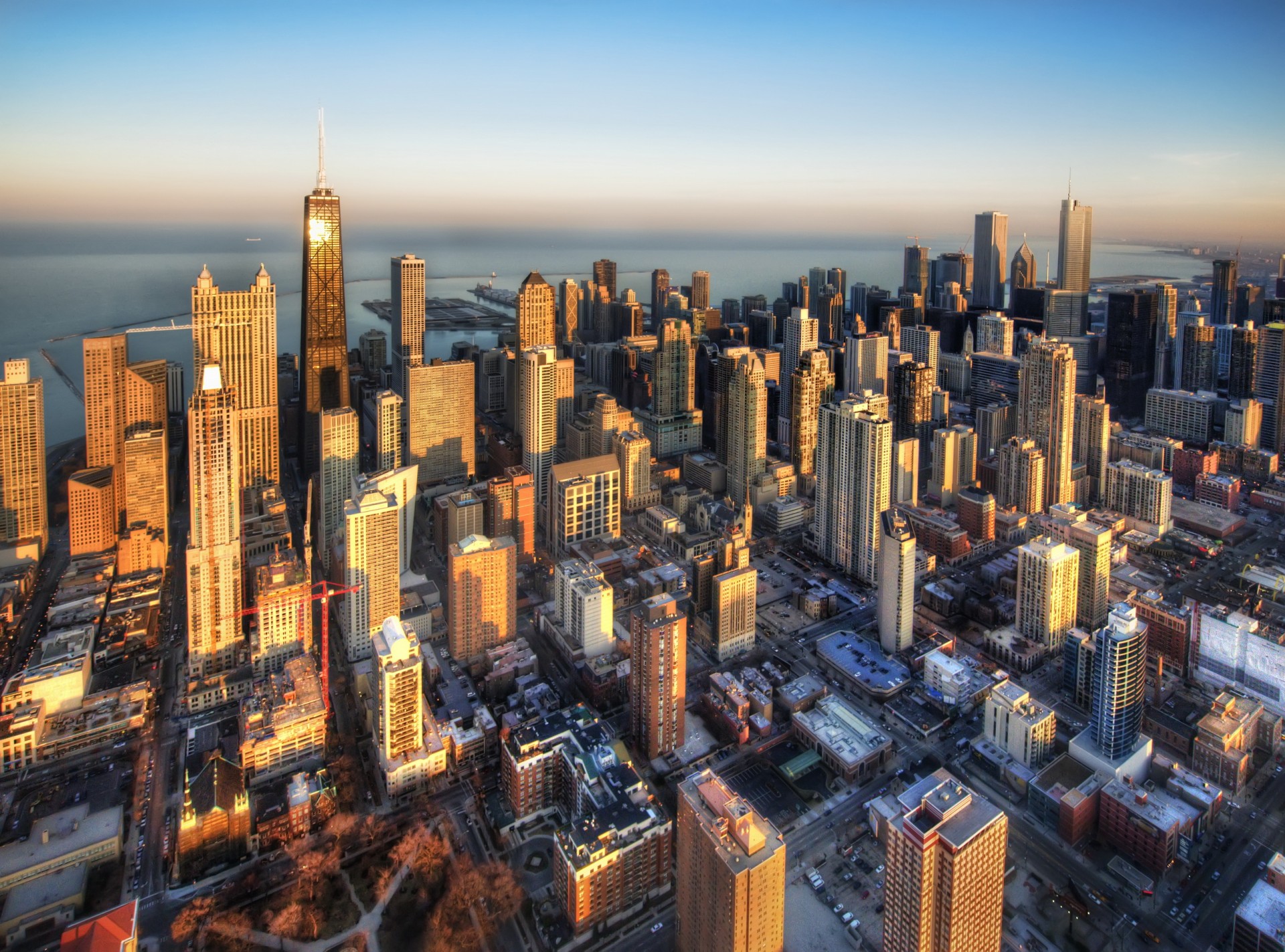 Gratte-ciel le long de la rivière dans la ville nocturne de chicagoGratte-ciel le long de la rivière dans la ville nocturne de Chicago