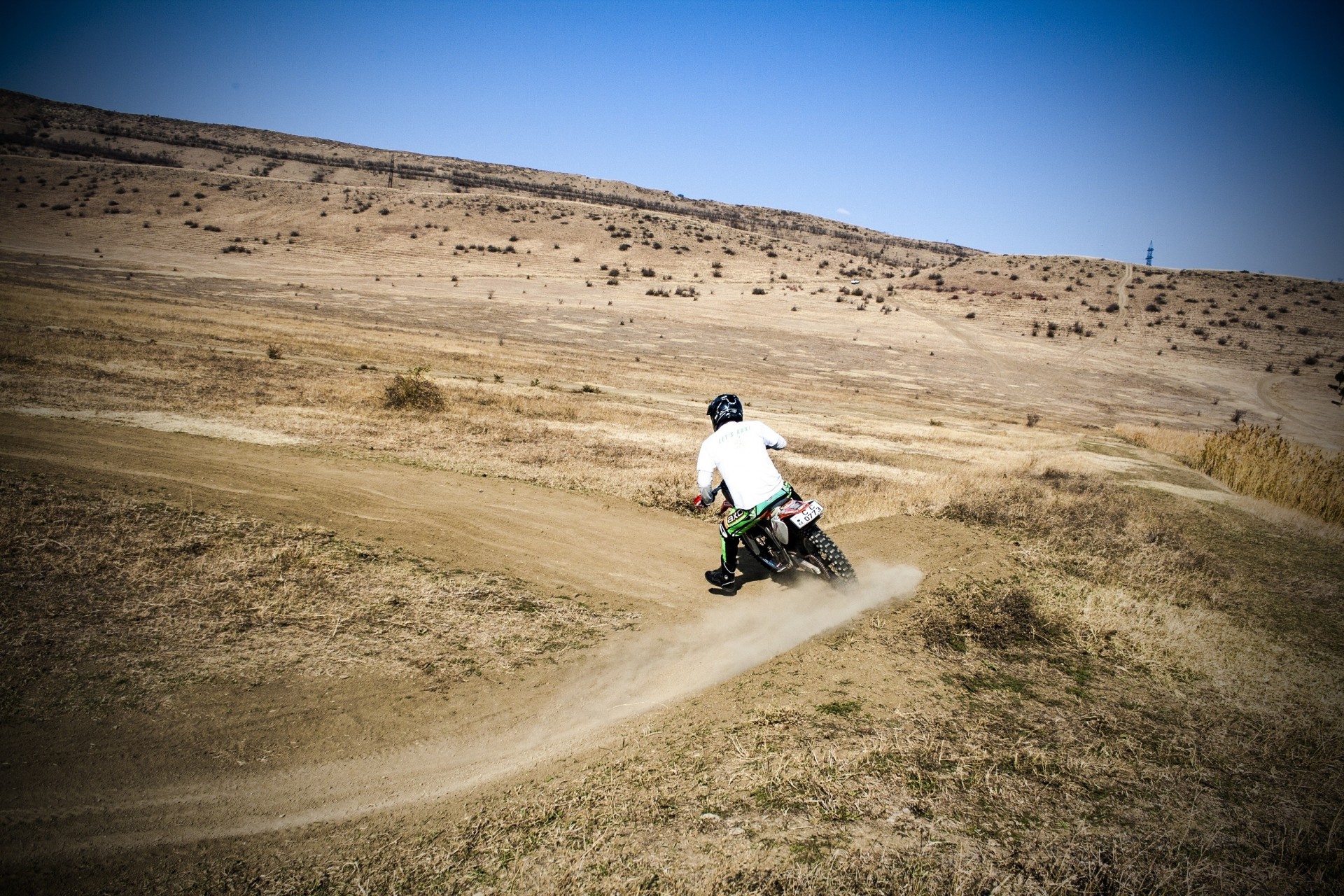 Un motocycliste sur une moto se précipite à travers les champs et les bois pour sûr à sa madame du village voisinUn motocycliste sur une moto se précipite à travers les champs et les bois pour sûr à sa Madame du village voisin