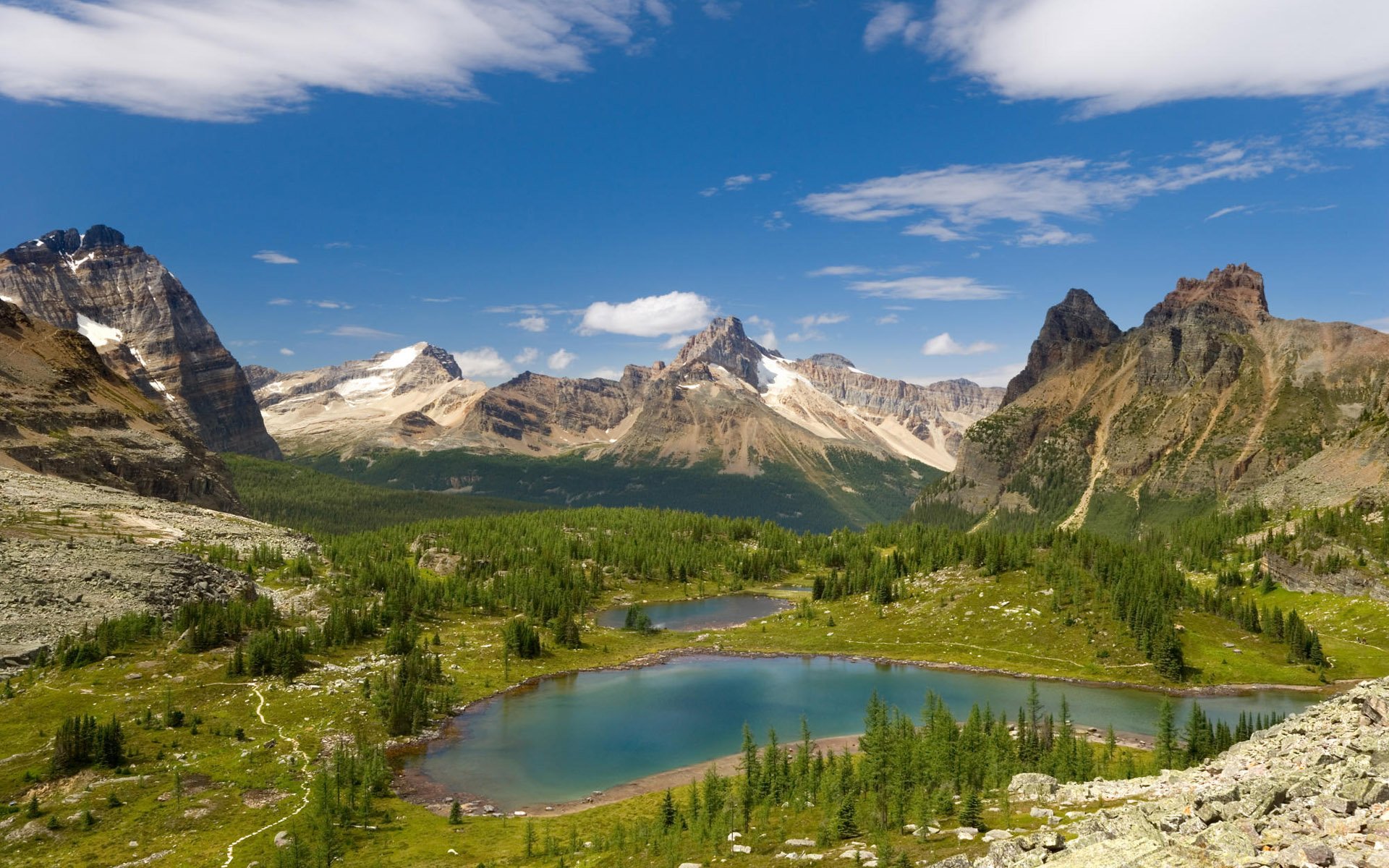 Lac dans les montagnes à côté de la route éclairéeLac dans les montagnes à côté de la route éclairée