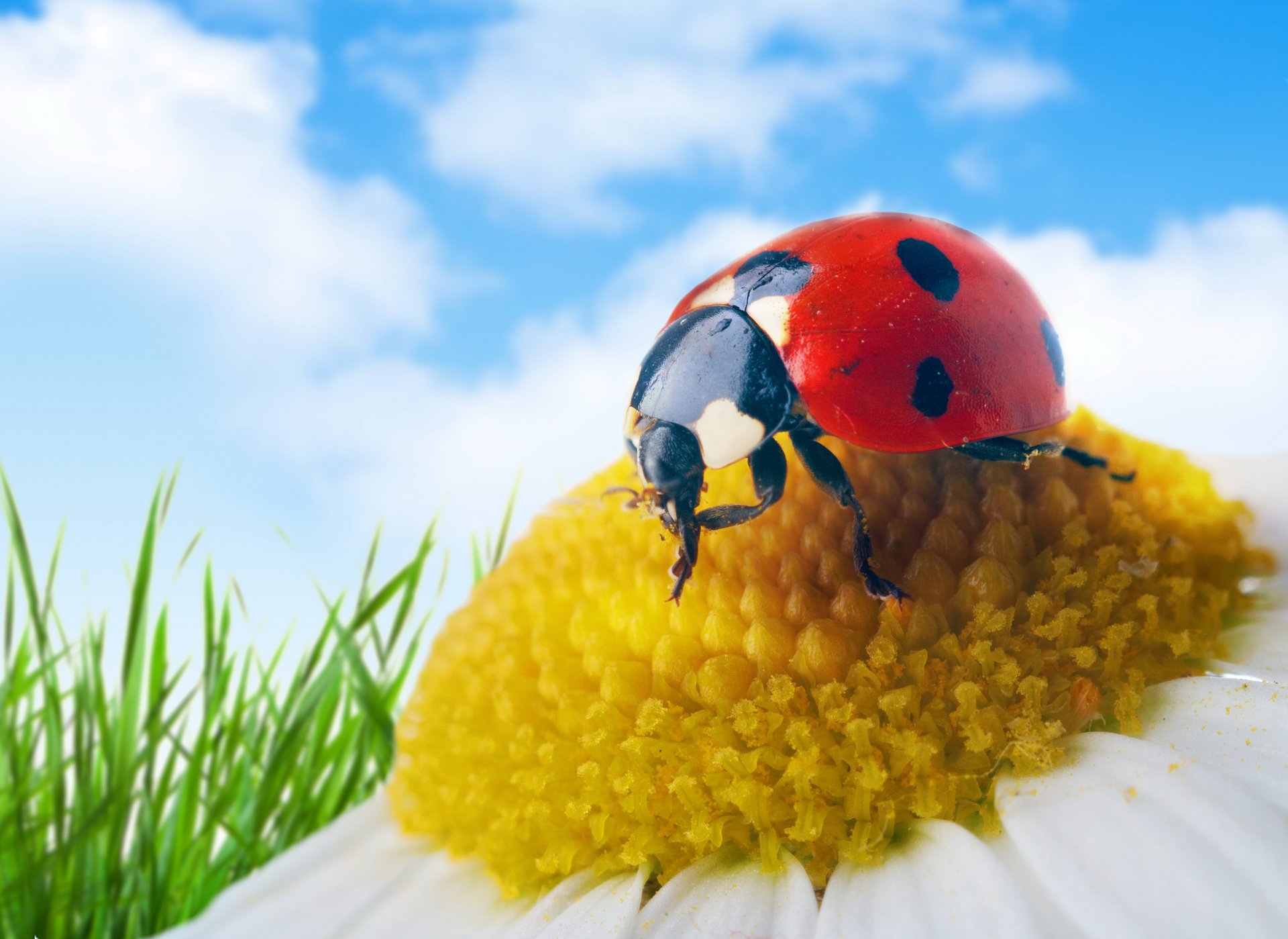 Marguerite blanche sur fond de ciel bleu avec des nuages