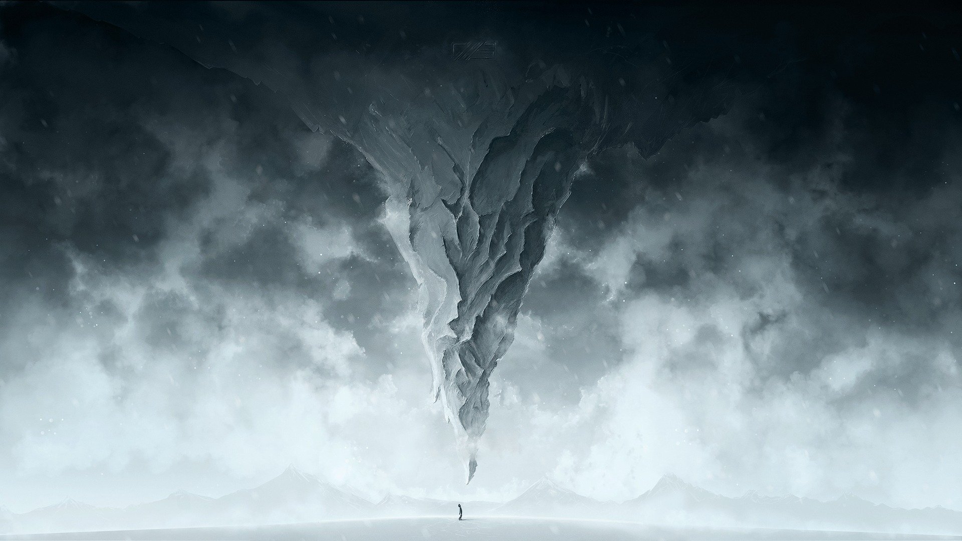 L'homme qui marche dans le froid et la tempête de neigeL'homme qui marche dans le froid et la tempête de neige