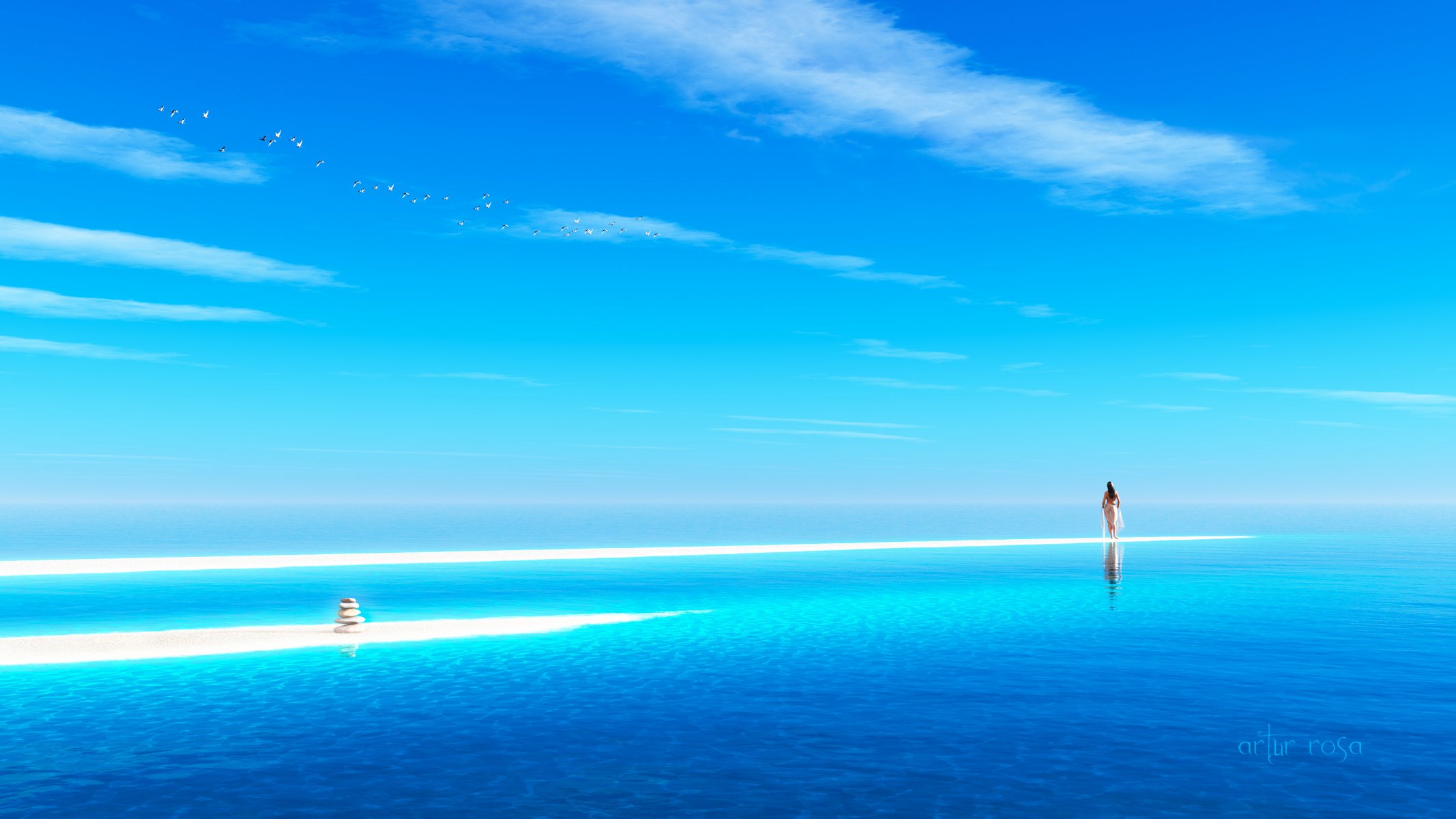 La jeune fille гуляющая de la partie peu profonde de l'océan, près de la riveLa jeune fille гуляющая de la partie peu profonde de l'océan, près de la rive