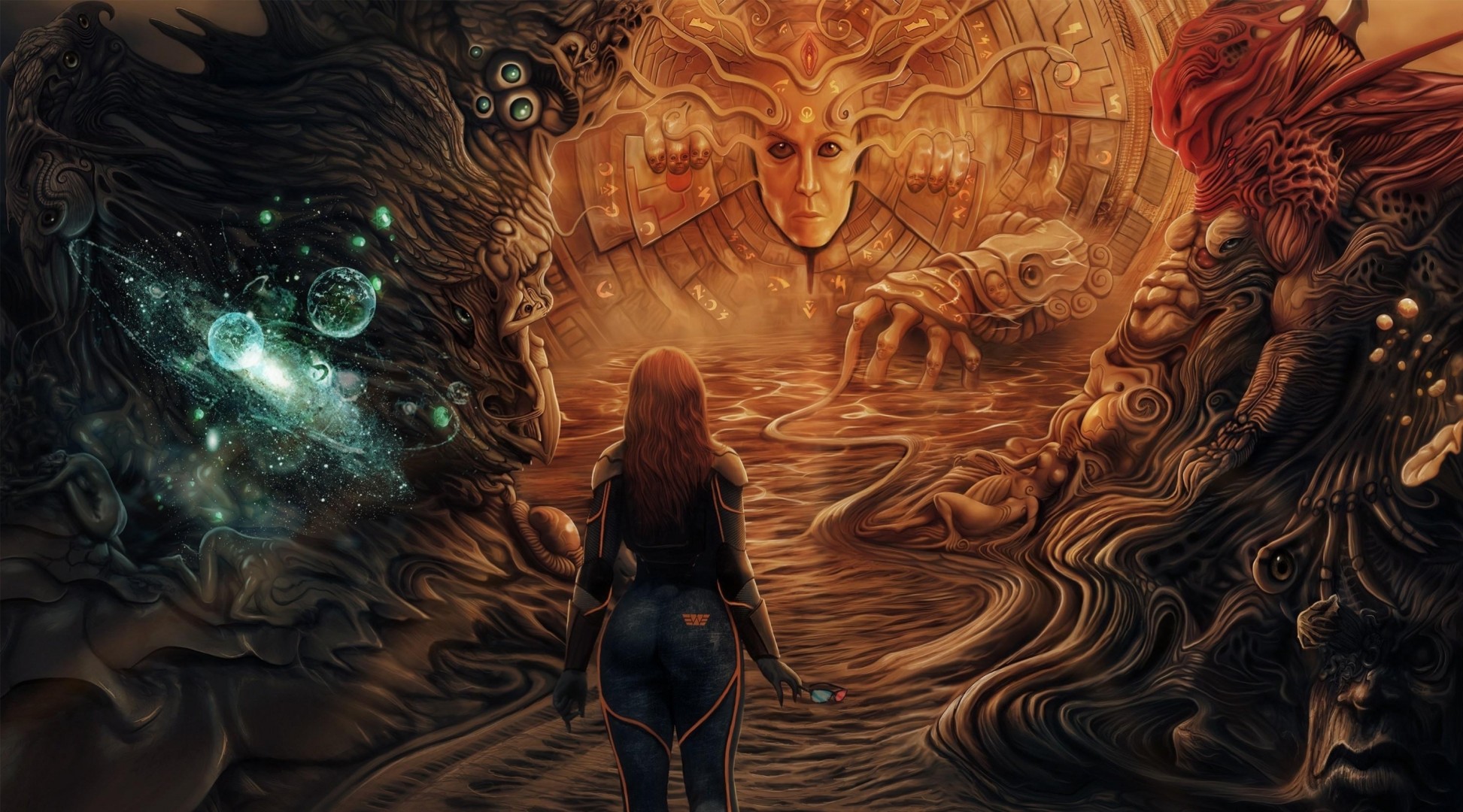 Personnage du jeu devant un monstre aux yeux rougesPersonnage du jeu devant un monstre aux yeux rouges