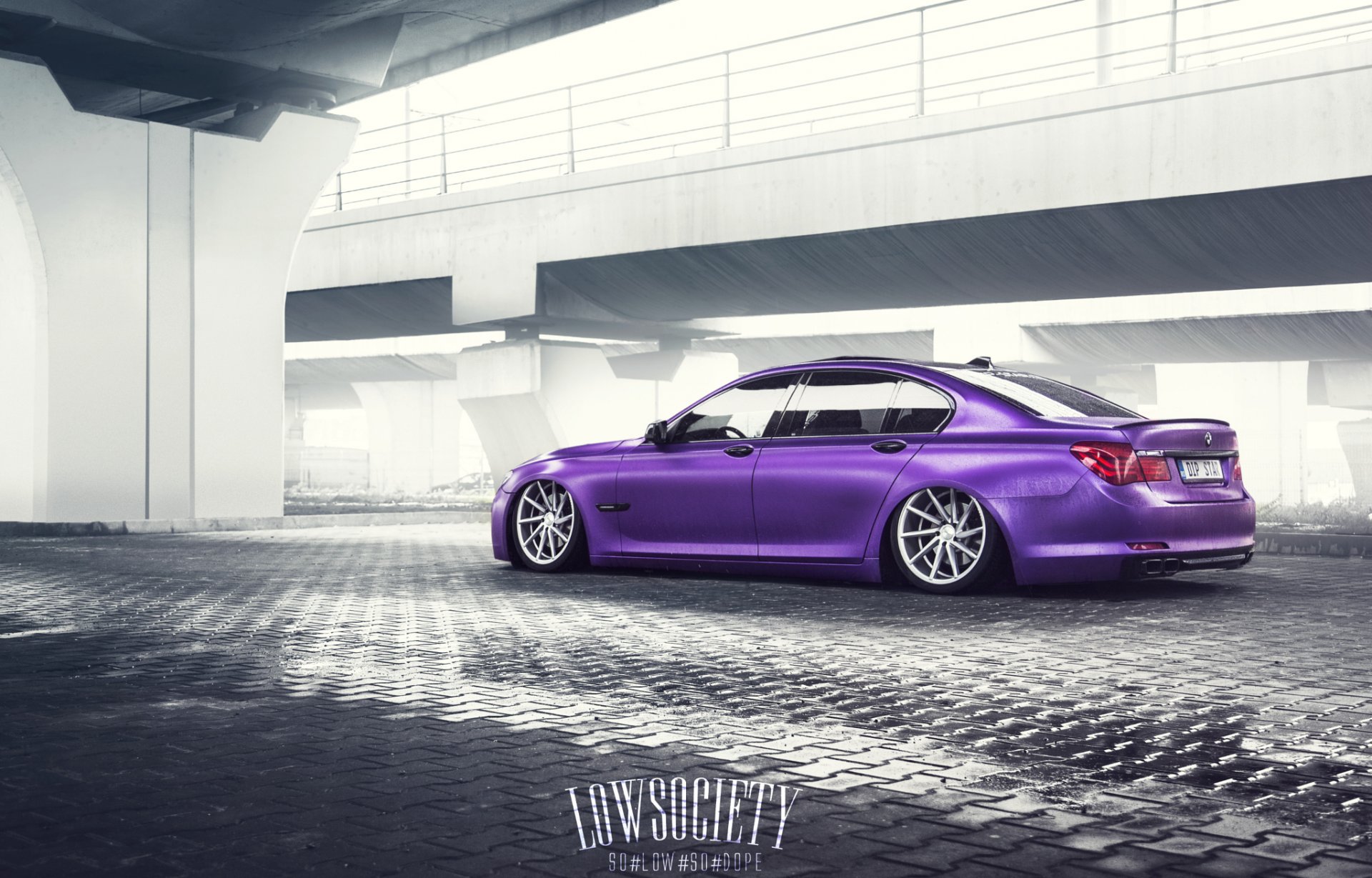 Voiture pourpre dans l'arc-en-ciel de la ville de nuit