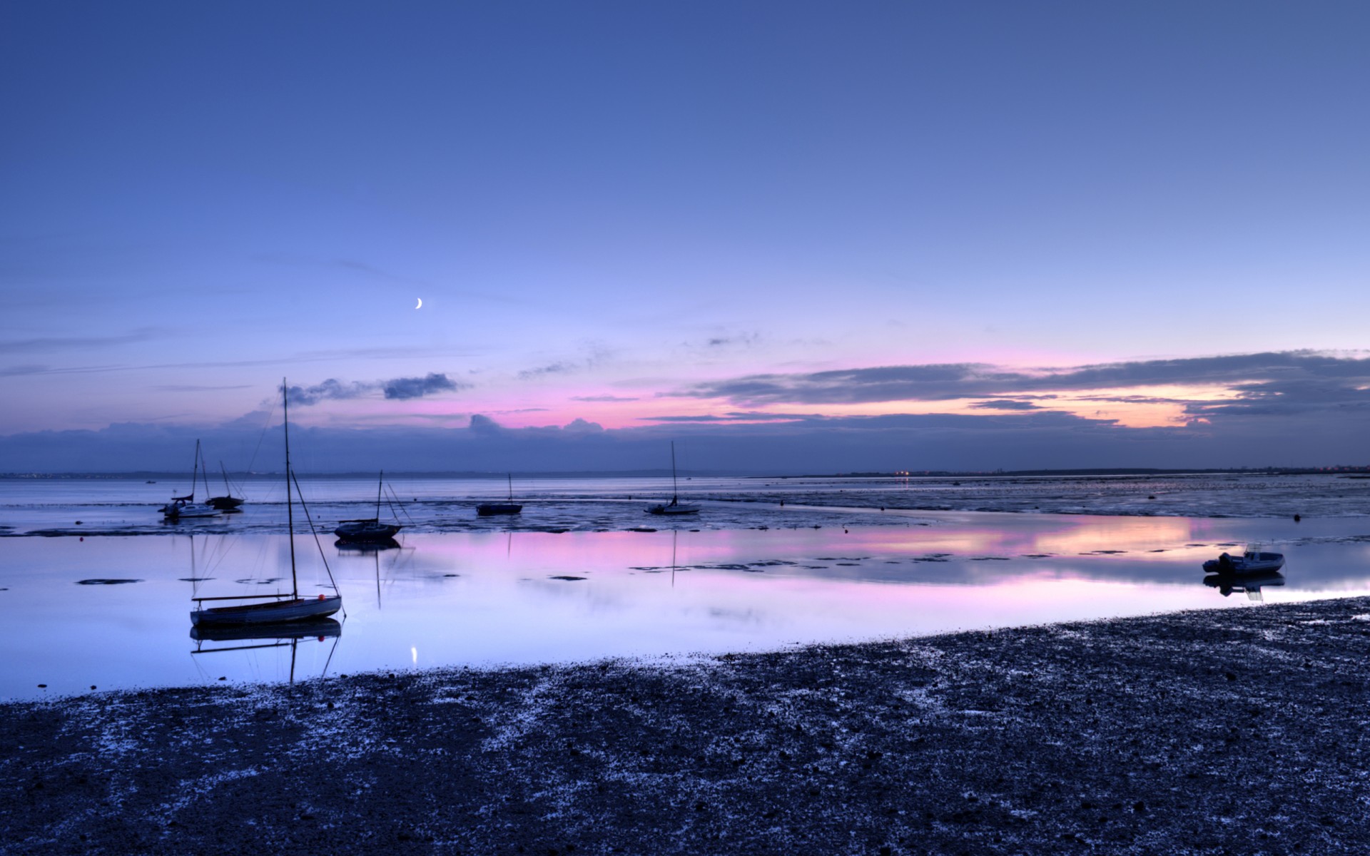 Côte plate, mer calme, motif inhabituel dans le cielCôte plate, mer calme, motif inhabituel dans le ciel