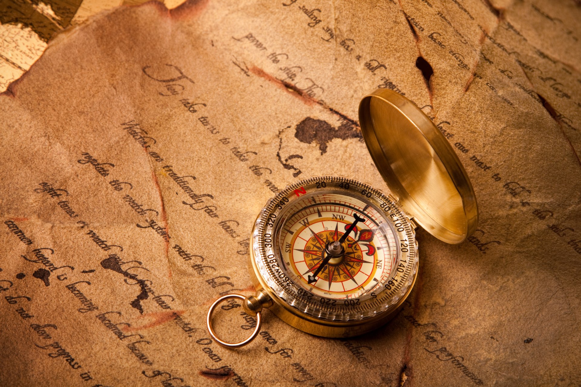 Sur les anciens enregistrements se trouve une boussole, sa flèche pointe vers le sudSur les anciens enregistrements se trouve une boussole, sa flèche pointe vers le Sud