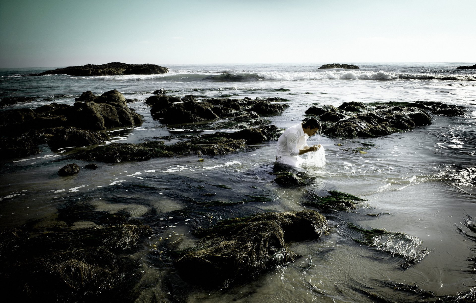 Chris hemsworth sur la table qui se tient sur la plageChris Hemsworth sur la table qui se tient sur la plage