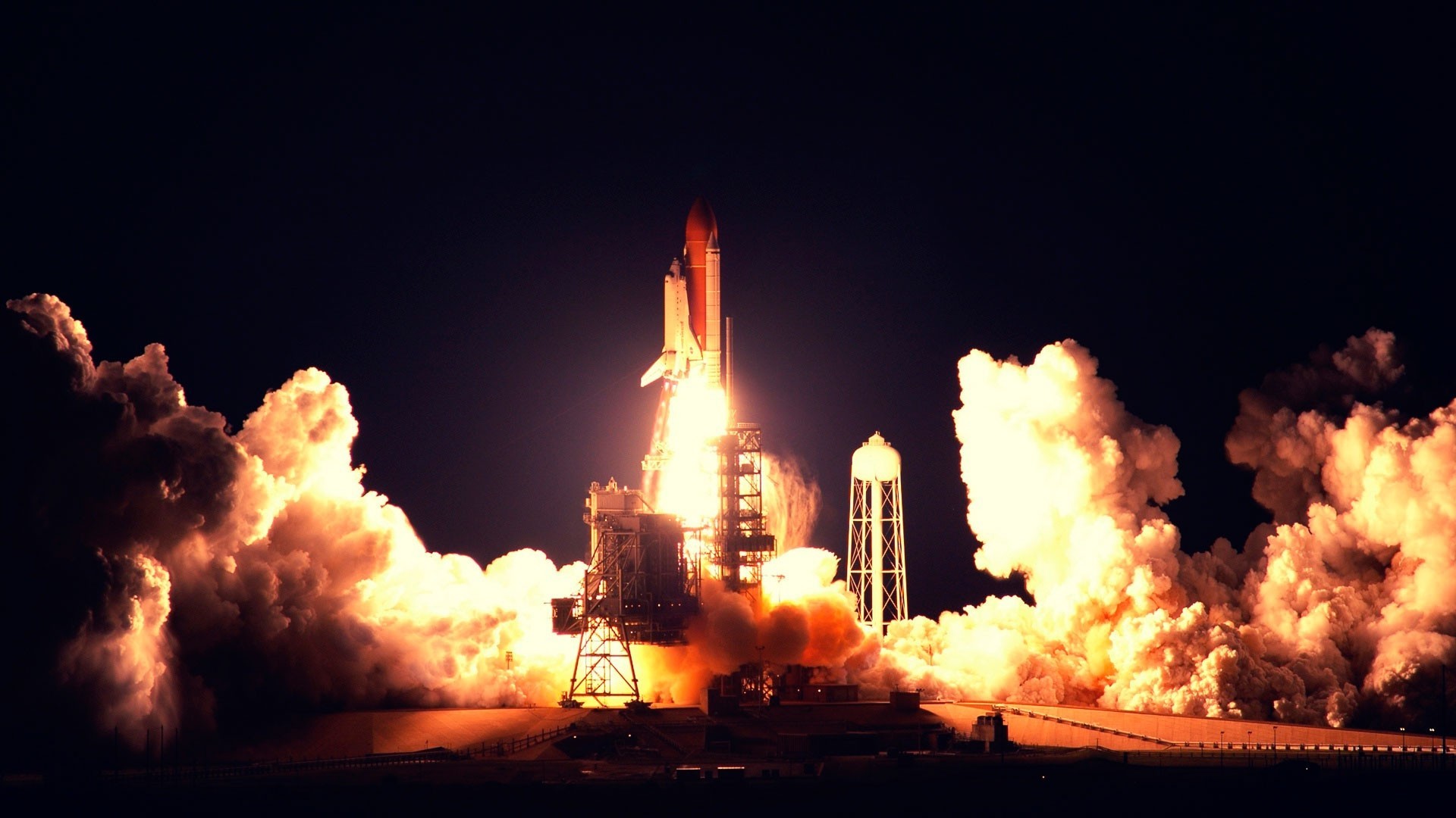 La navette spatiale décolle magnifiquement la nuitLa navette spatiale décolle magnifiquement la nuit