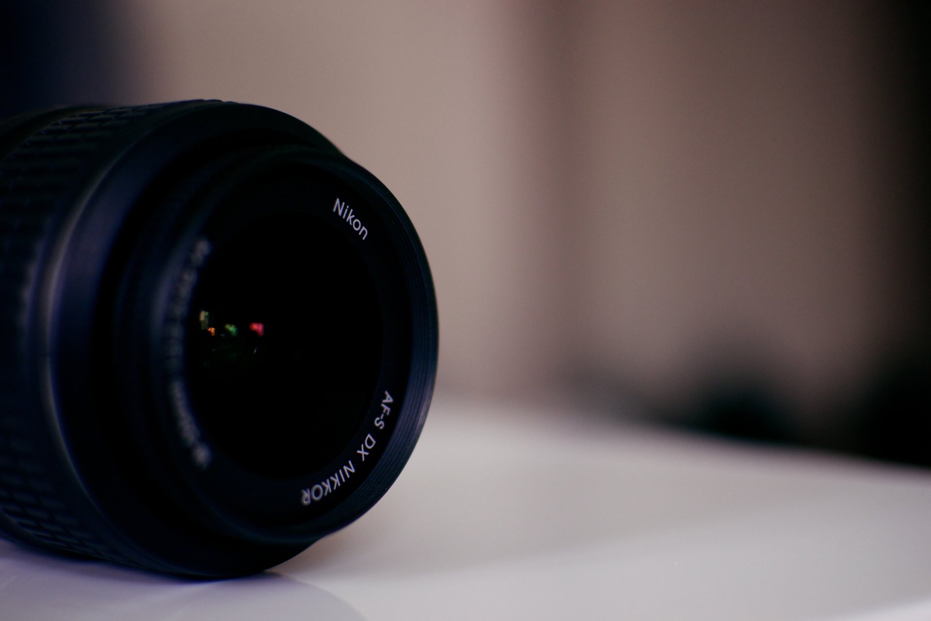 Objectif de la caméra Nikon avec un fond flou