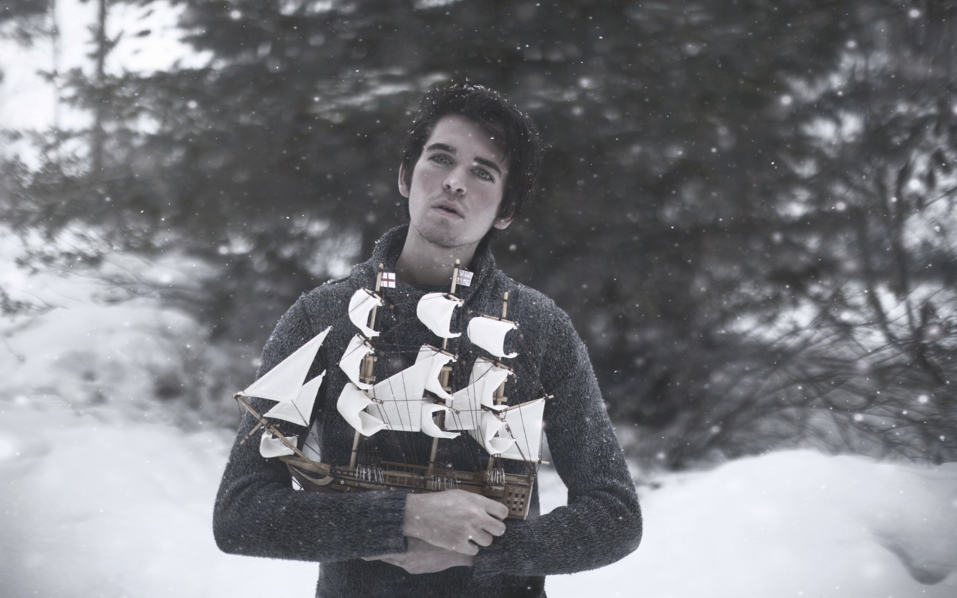 Guy avec voilier noir et blanc photo