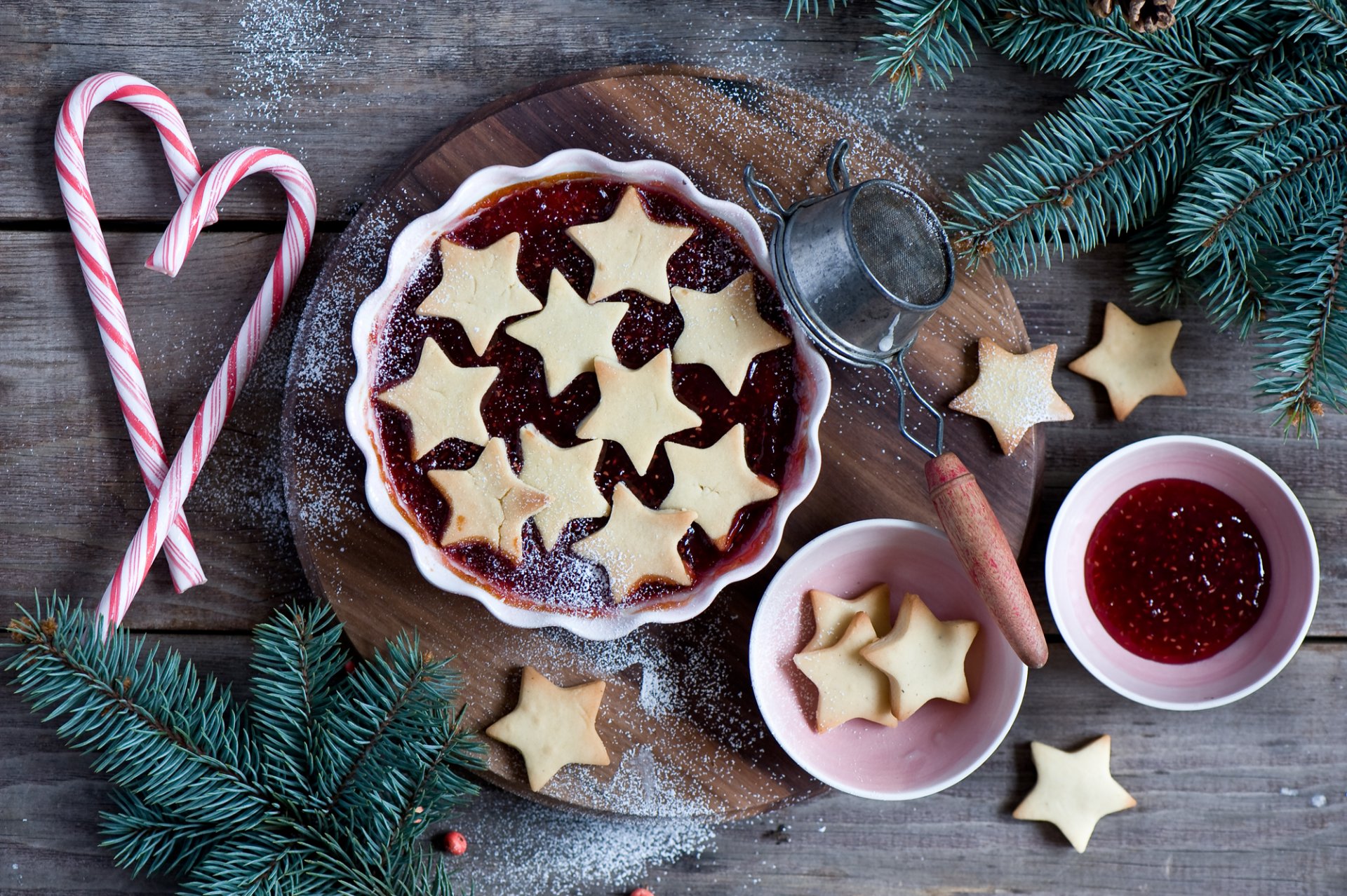 Friandises du nouvel an avec un arbre de noël sur la tableFriandises du nouvel an avec un arbre de Noël sur la table