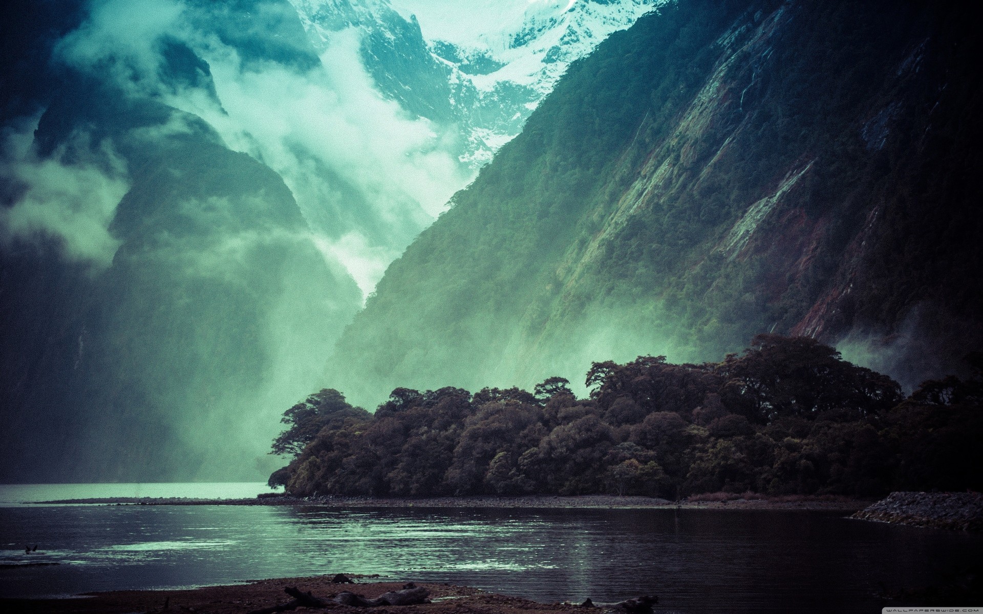 Vue panoramique sur la nature de la nouvelle-zélande au coucher du soleilVue panoramique sur la nature de la Nouvelle-Zélande au coucher du soleil